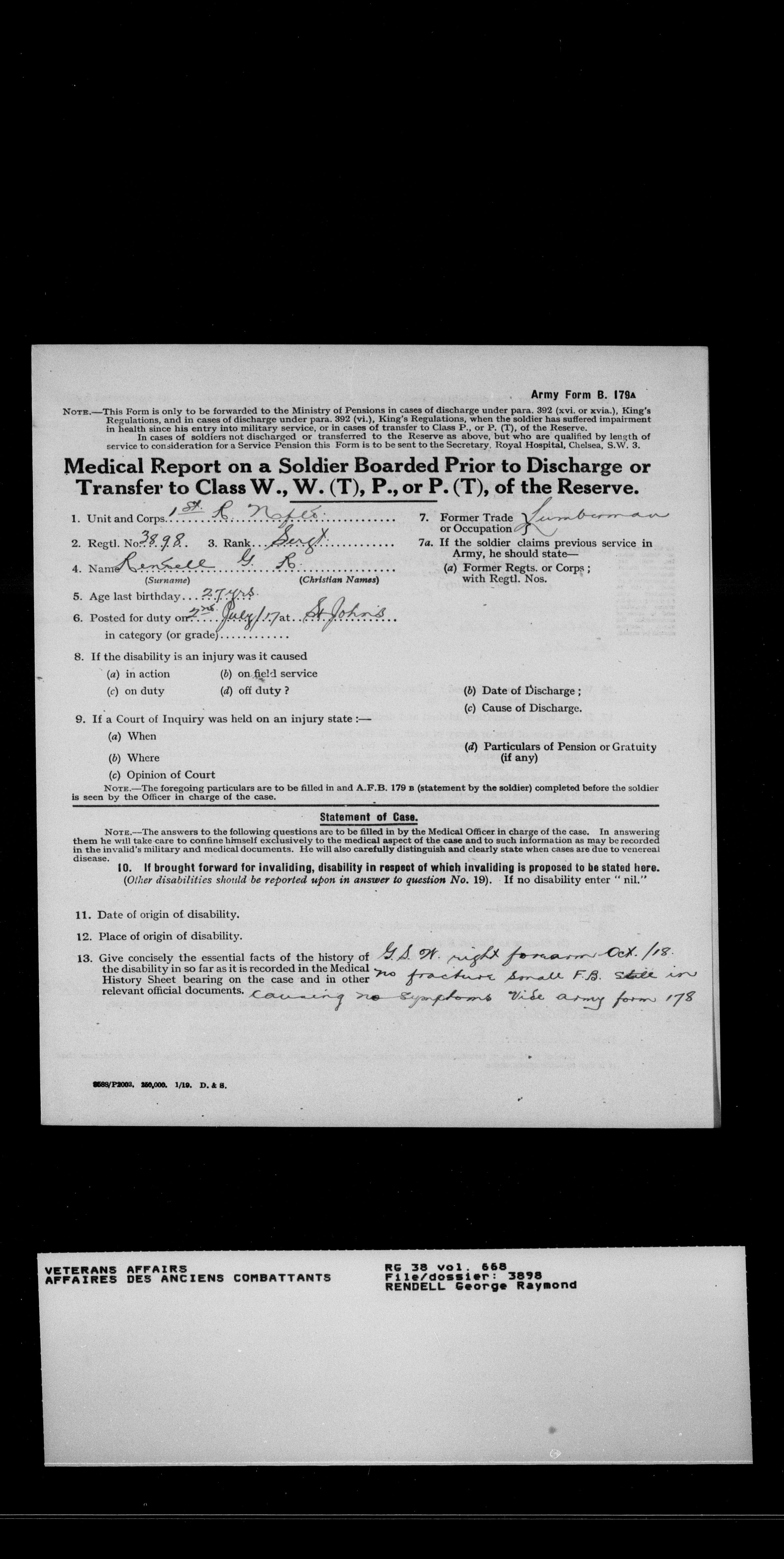 Military service files for members of the Royal Newfoundland Regiment and bandsmen and the Newfoundland Forestry Corps (1914-1919) - 18482