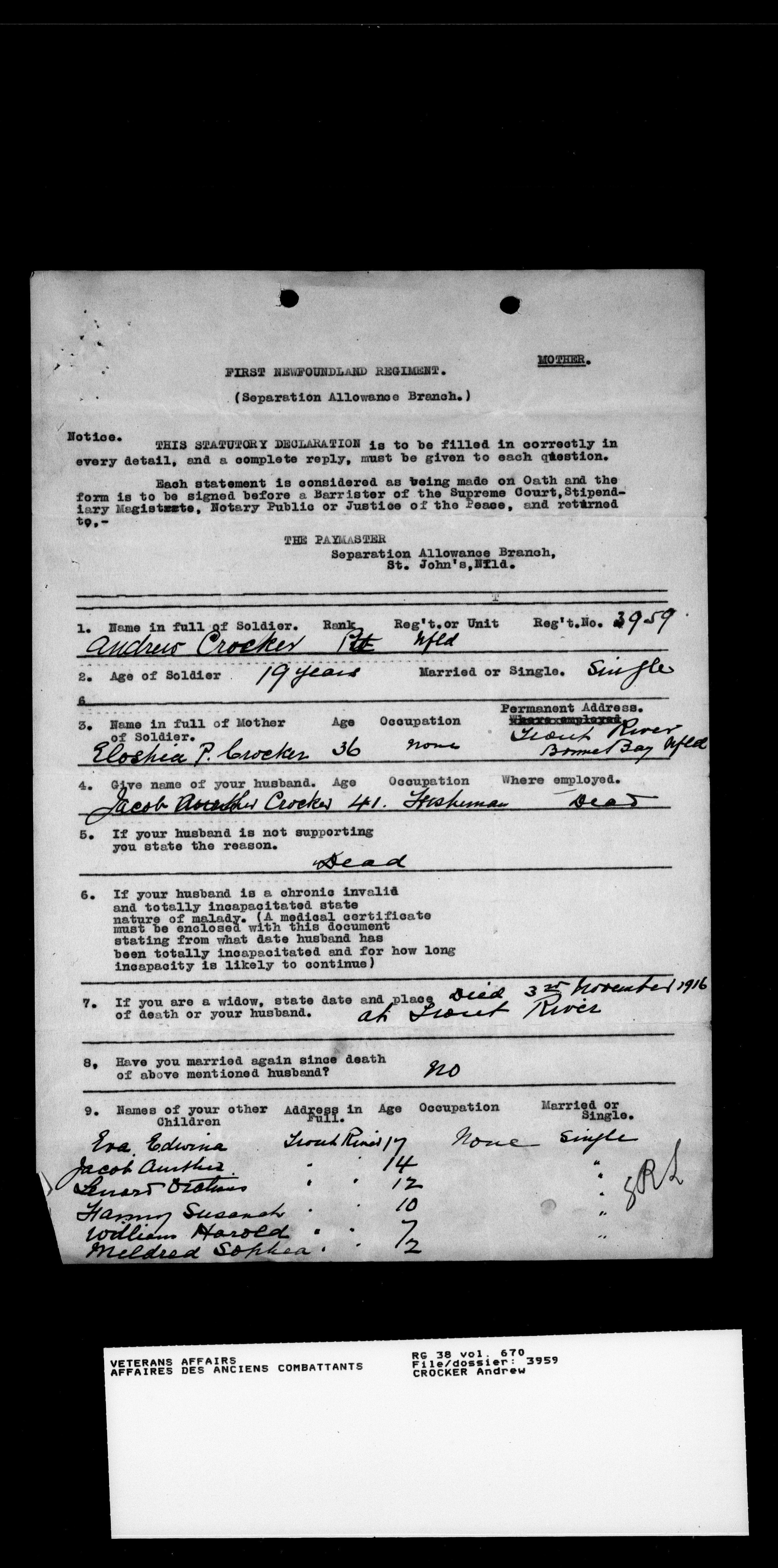 Military service files for members of the Royal Newfoundland Regiment and bandsmen and the Newfoundland Forestry Corps (1914-1919) - 18484