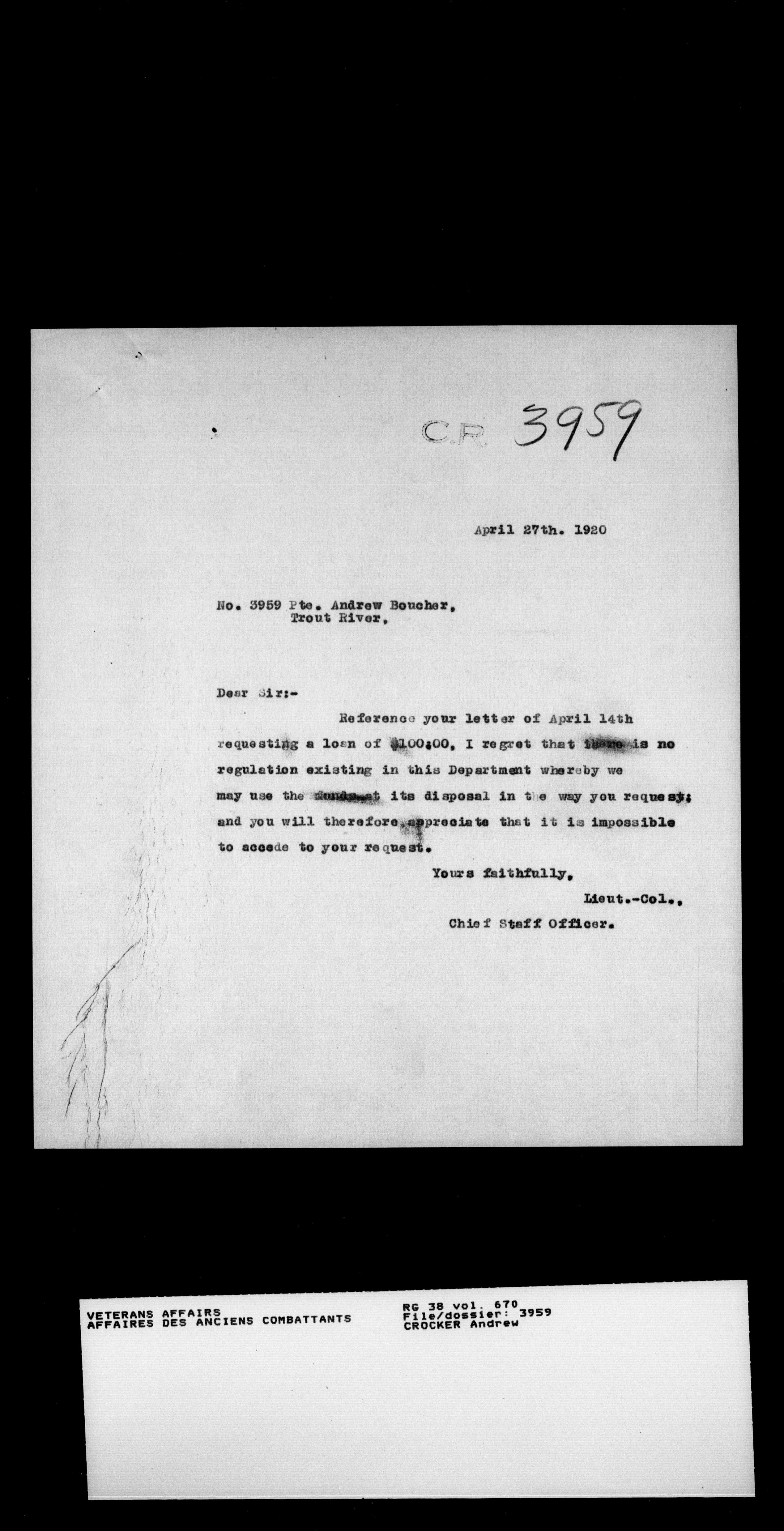 Military service files for members of the Royal Newfoundland Regiment and bandsmen and the Newfoundland Forestry Corps (1914-1919) - 18484