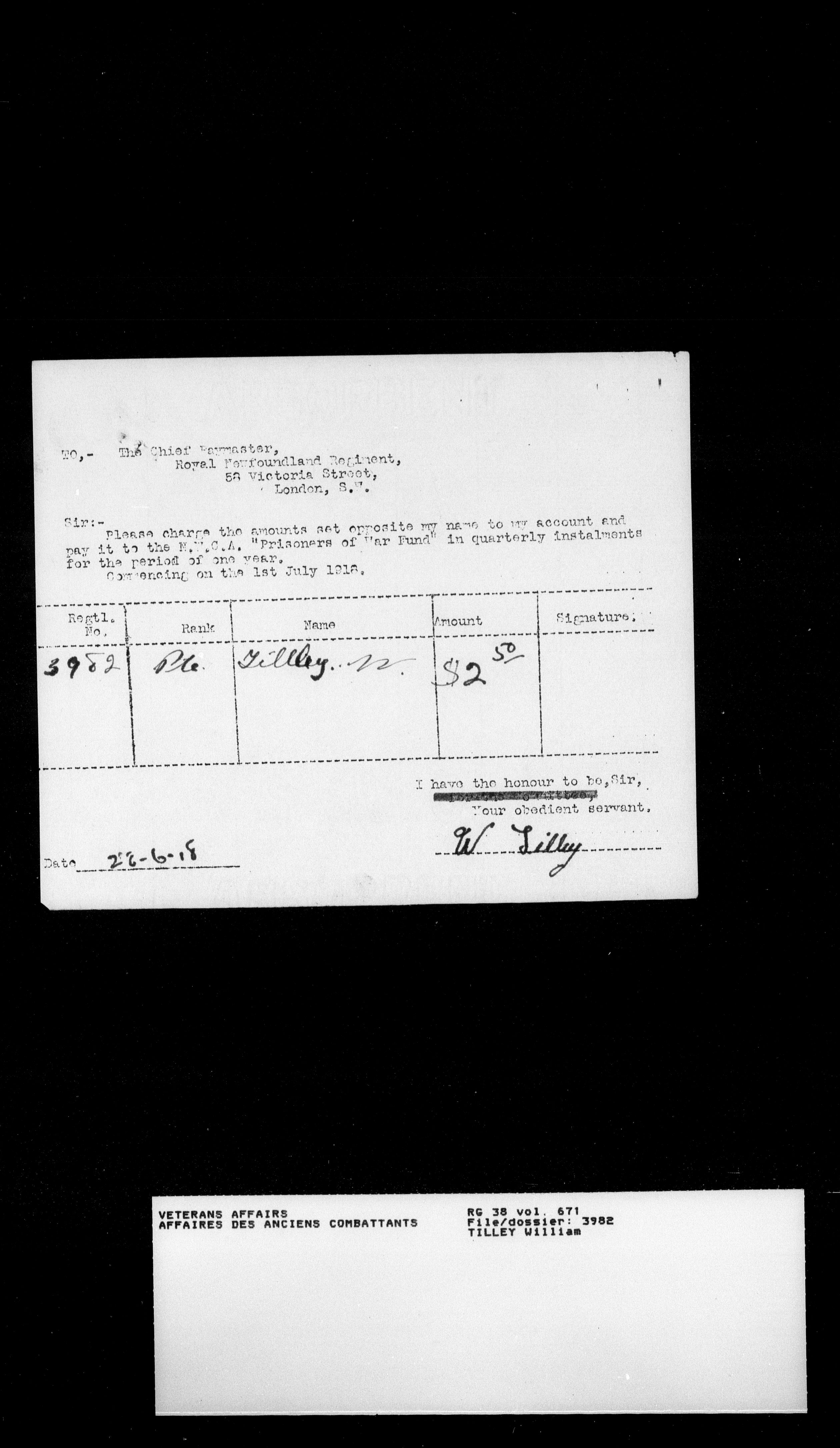 Military service files for members of the Royal Newfoundland Regiment and bandsmen and the Newfoundland Forestry Corps (1914-1919) - 18486