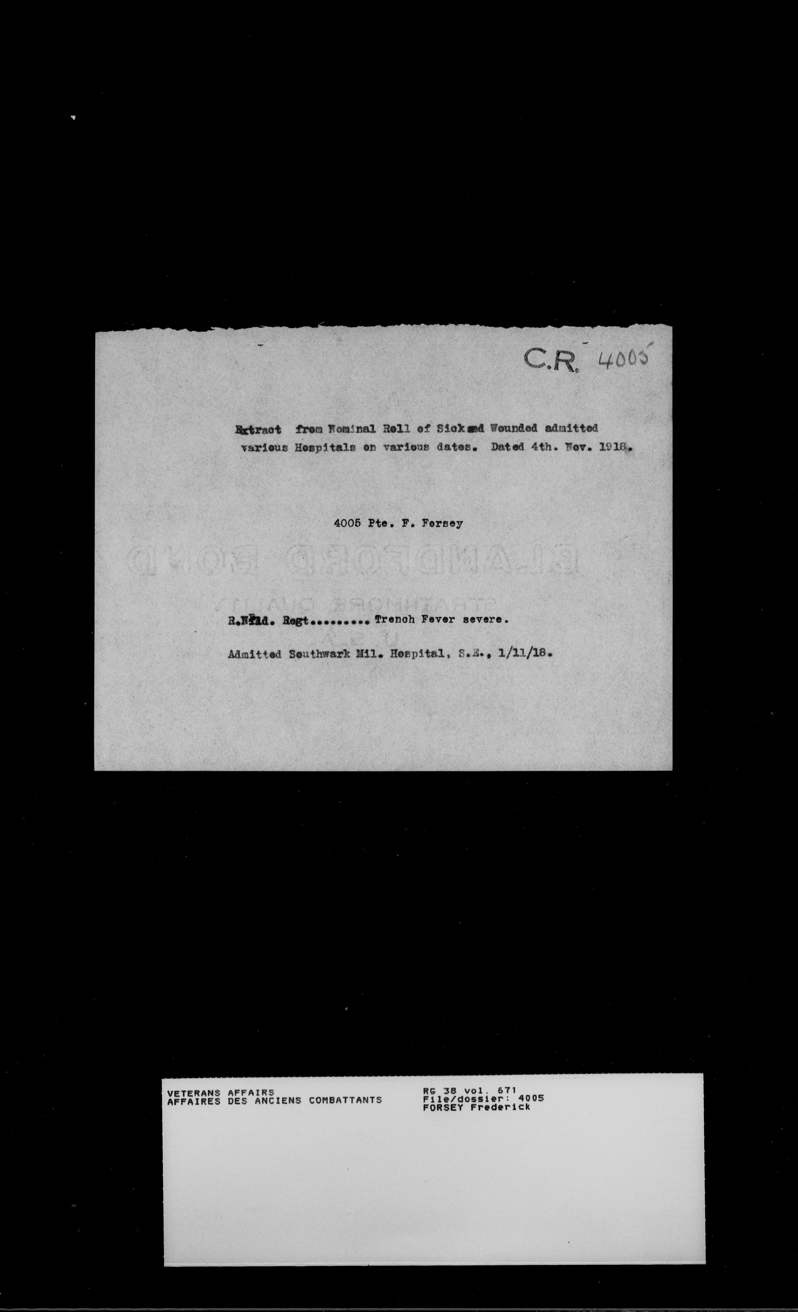 Military service files for members of the Royal Newfoundland Regiment and bandsmen and the Newfoundland Forestry Corps (1914-1919) - 18487