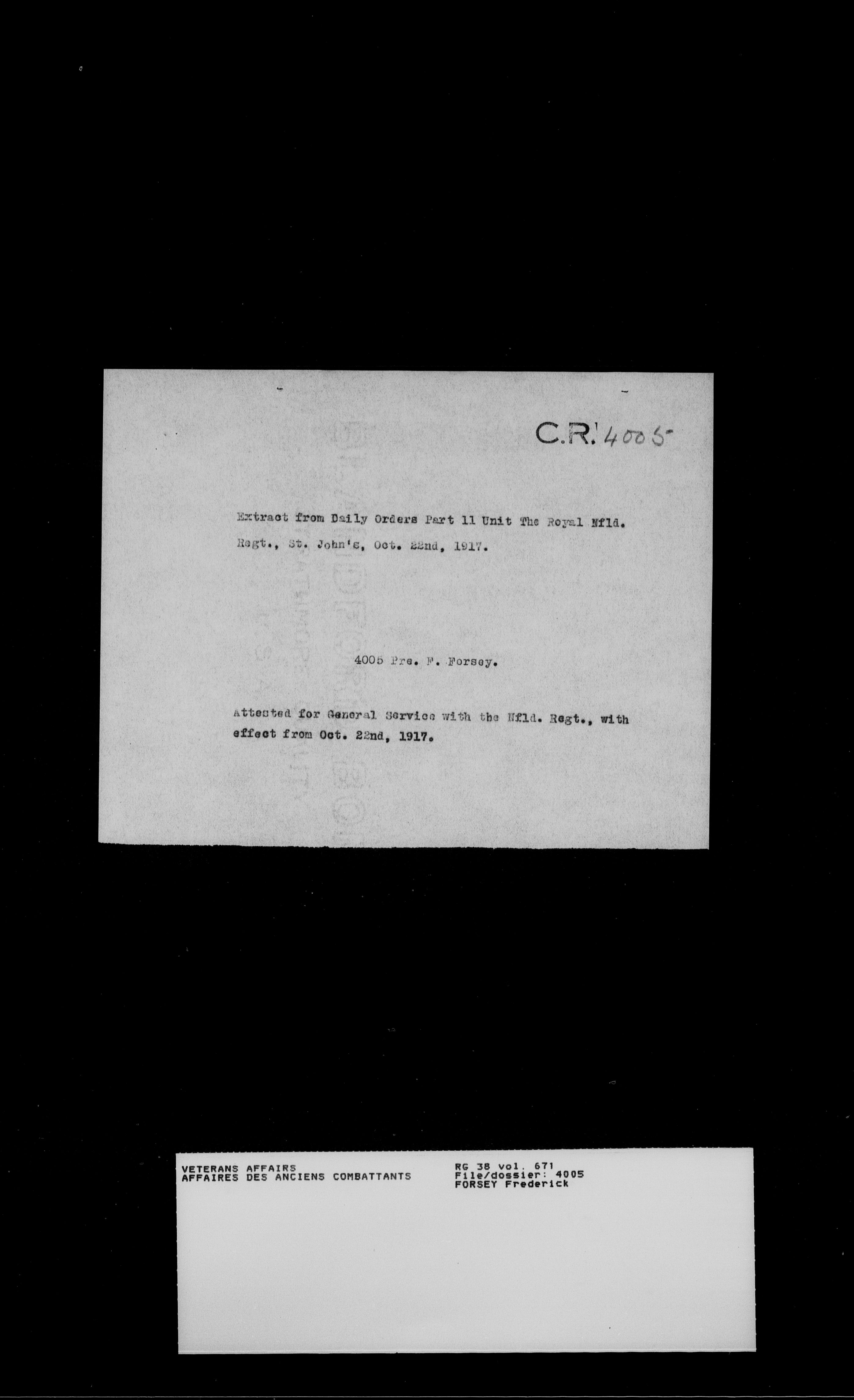 Military service files for members of the Royal Newfoundland Regiment and bandsmen and the Newfoundland Forestry Corps (1914-1919) - 18487