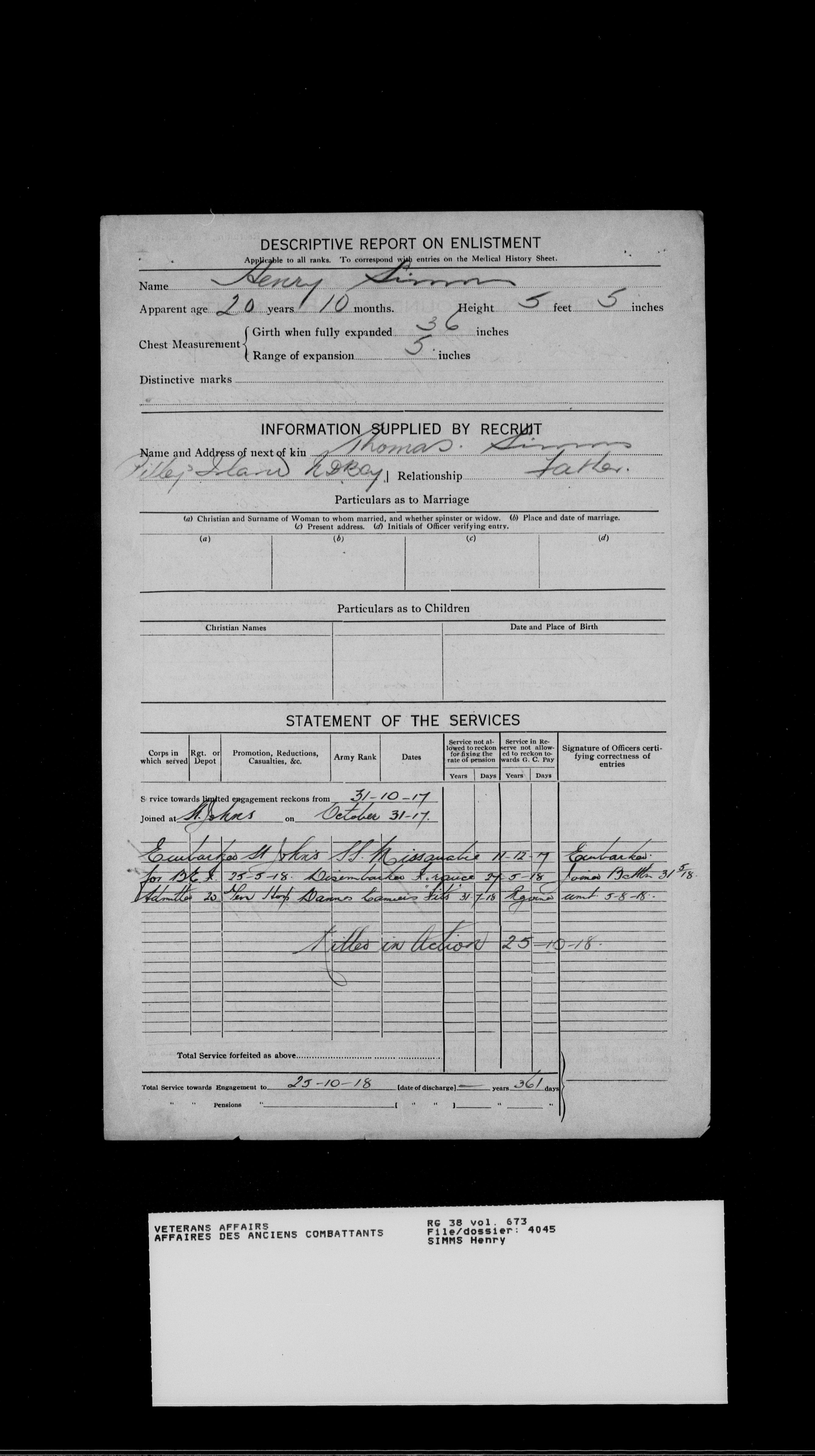 Military service files for members of the Royal Newfoundland Regiment and bandsmen and the Newfoundland Forestry Corps (1914-1919) - 18489