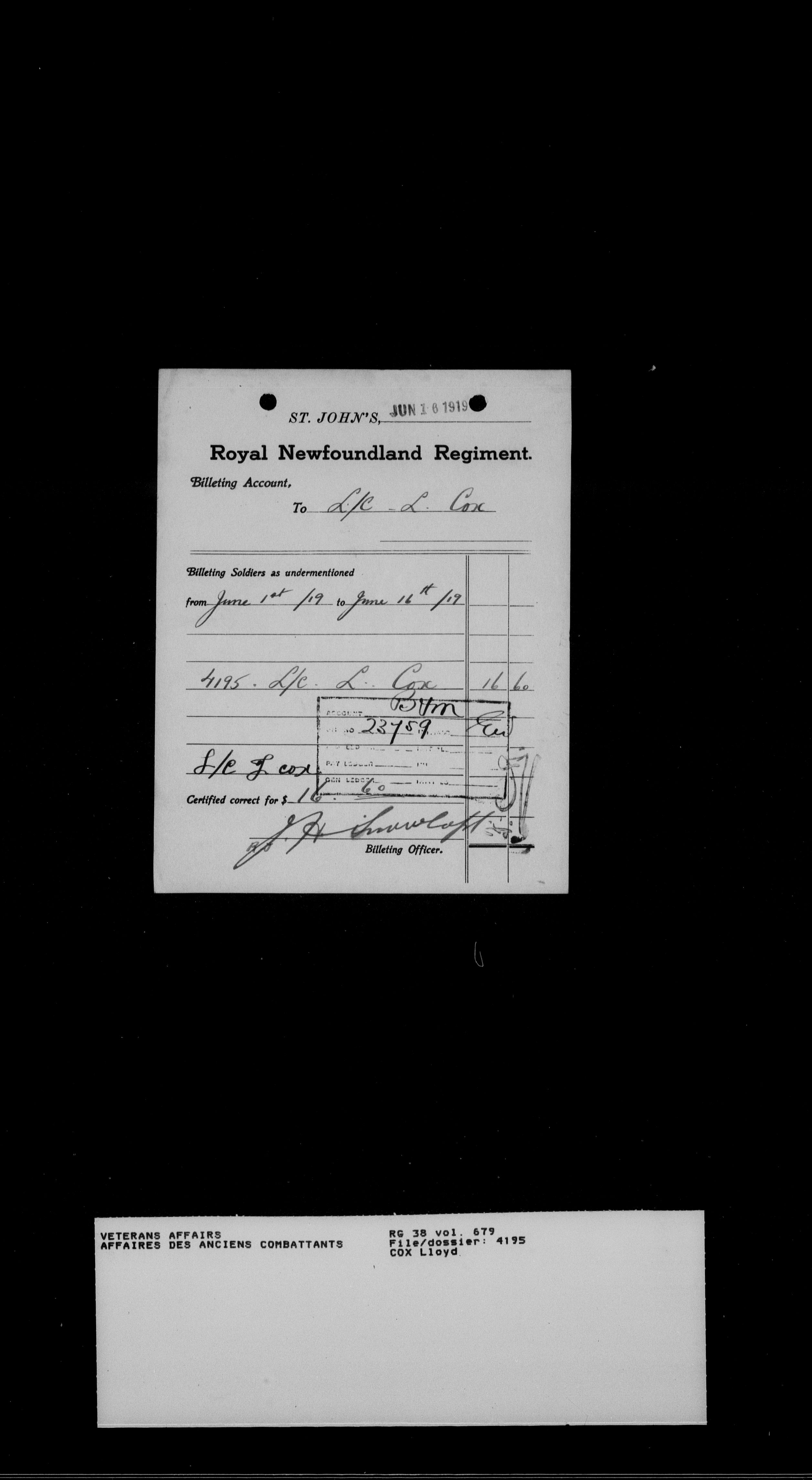 Military service files for members of the Royal Newfoundland Regiment and bandsmen and the Newfoundland Forestry Corps (1914-1919) - 18496