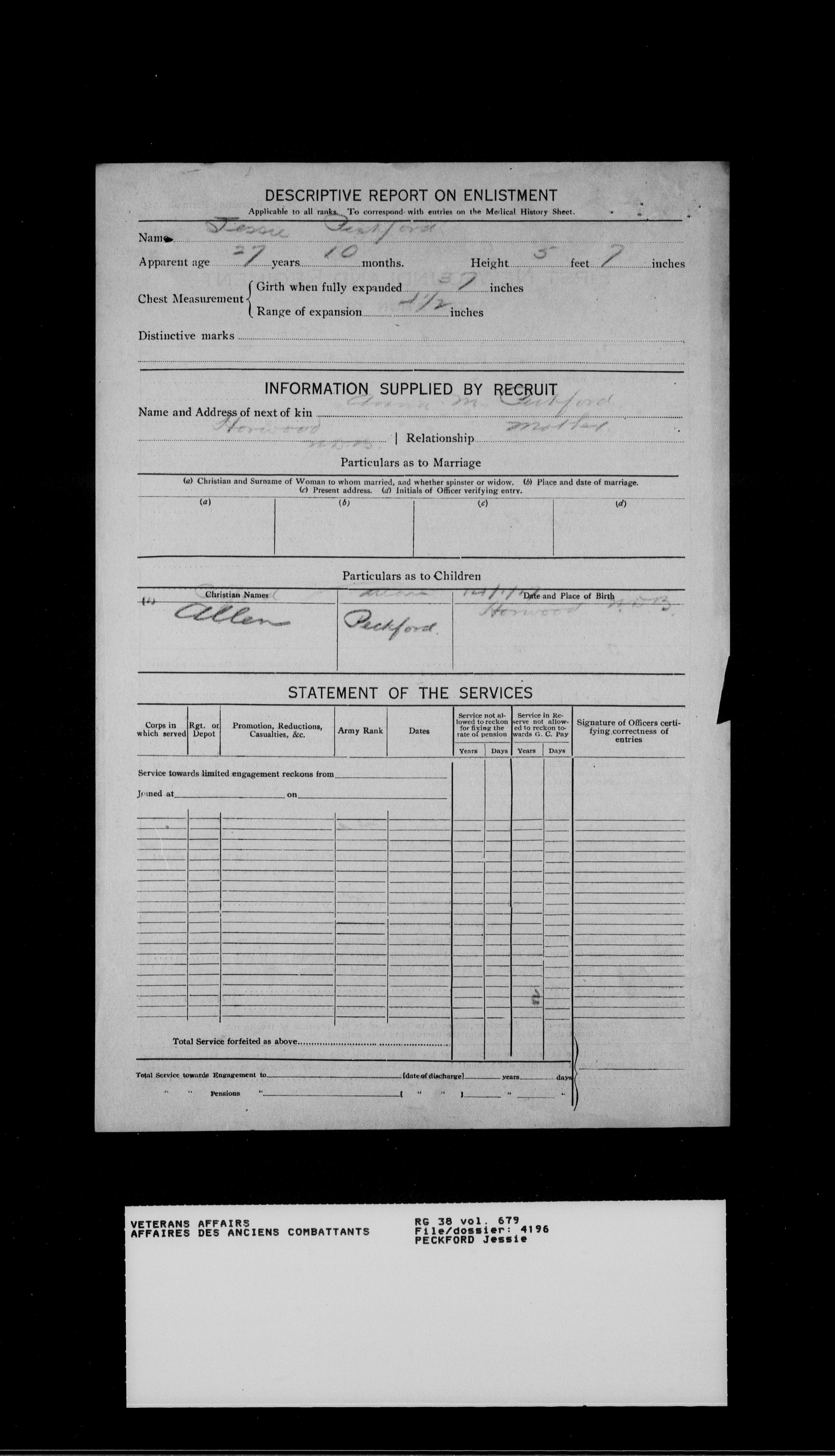 Military service files for members of the Royal Newfoundland Regiment and bandsmen and the Newfoundland Forestry Corps (1914-1919) - 18496