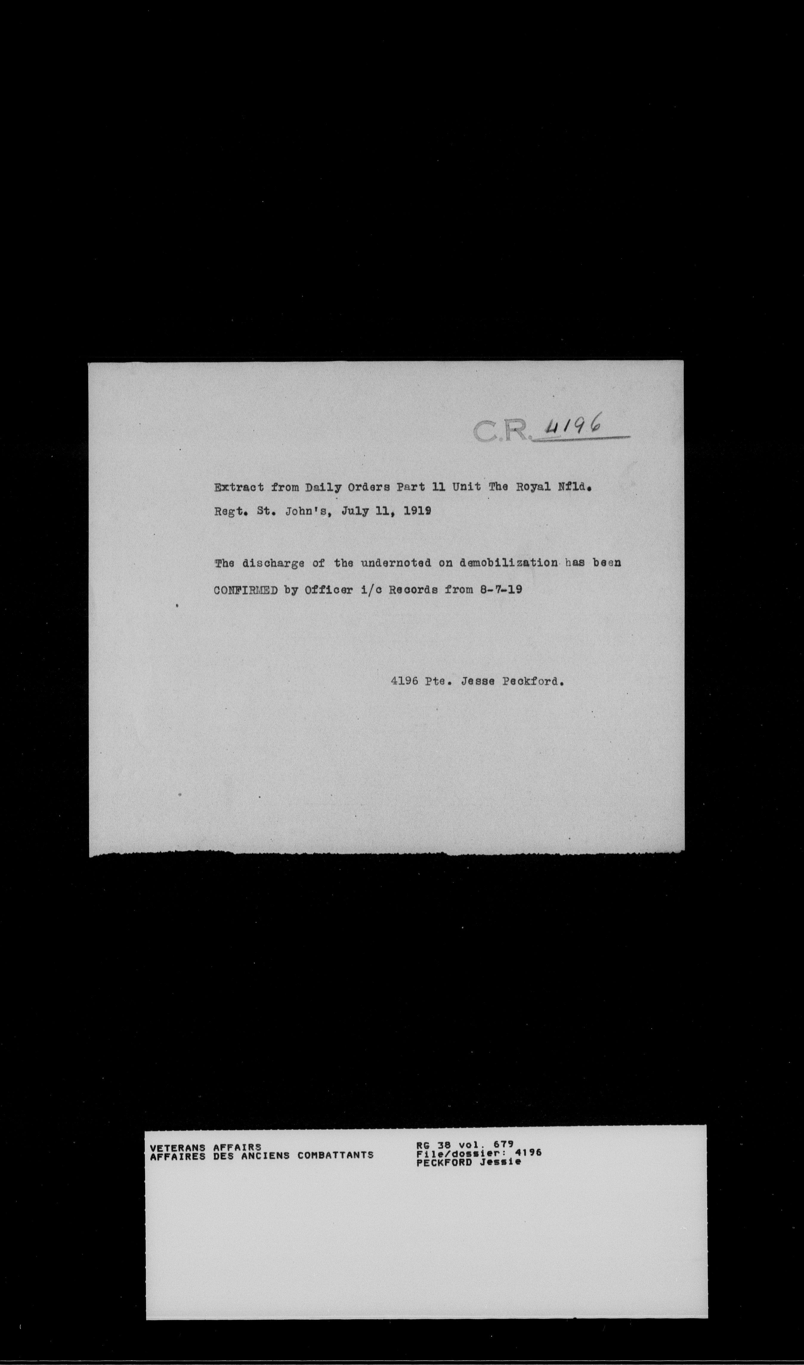 Military service files for members of the Royal Newfoundland Regiment and bandsmen and the Newfoundland Forestry Corps (1914-1919) - 18496