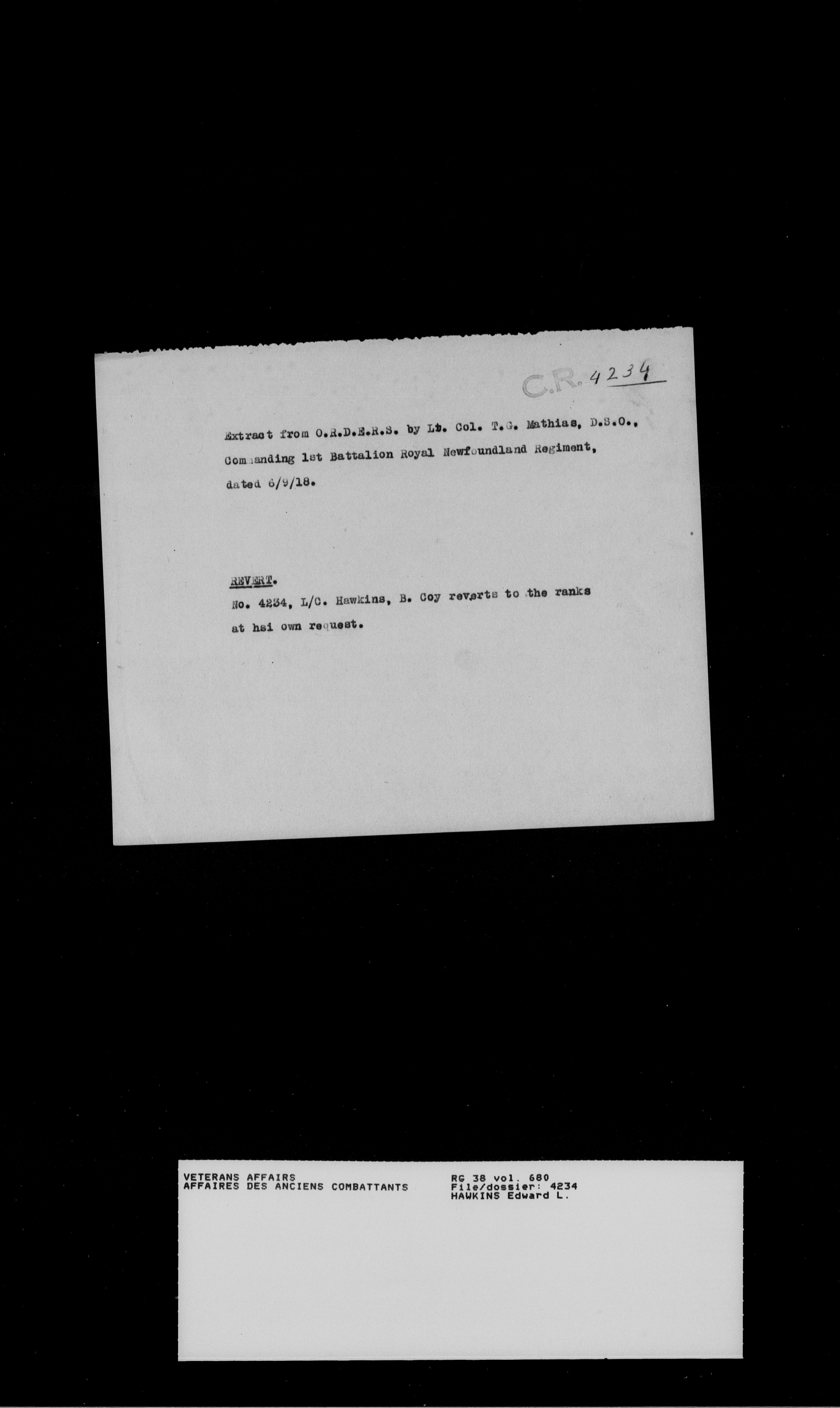 Military service files for members of the Royal Newfoundland Regiment and bandsmen and the Newfoundland Forestry Corps (1914-1919) - 18497
