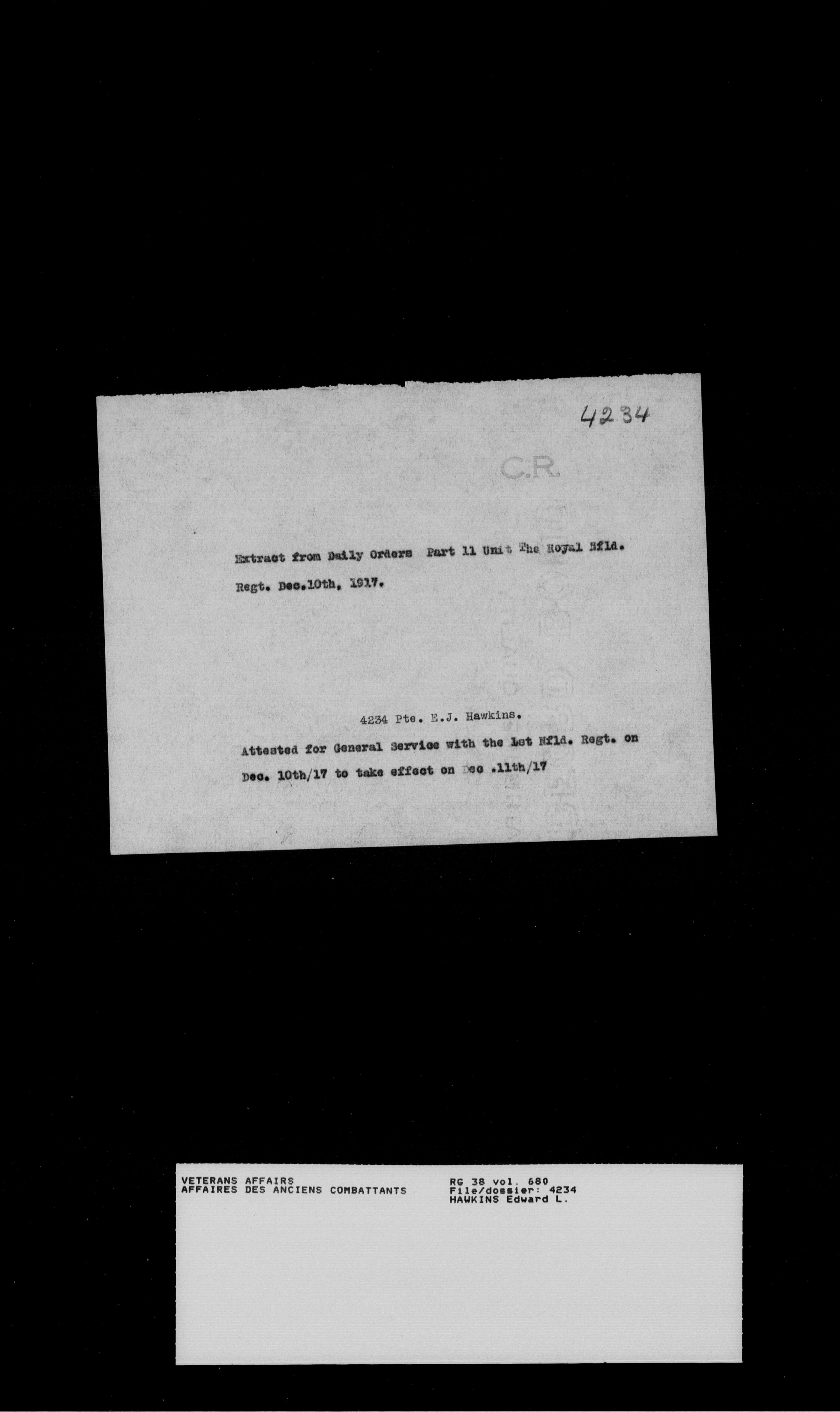 Military service files for members of the Royal Newfoundland Regiment and bandsmen and the Newfoundland Forestry Corps (1914-1919) - 18497