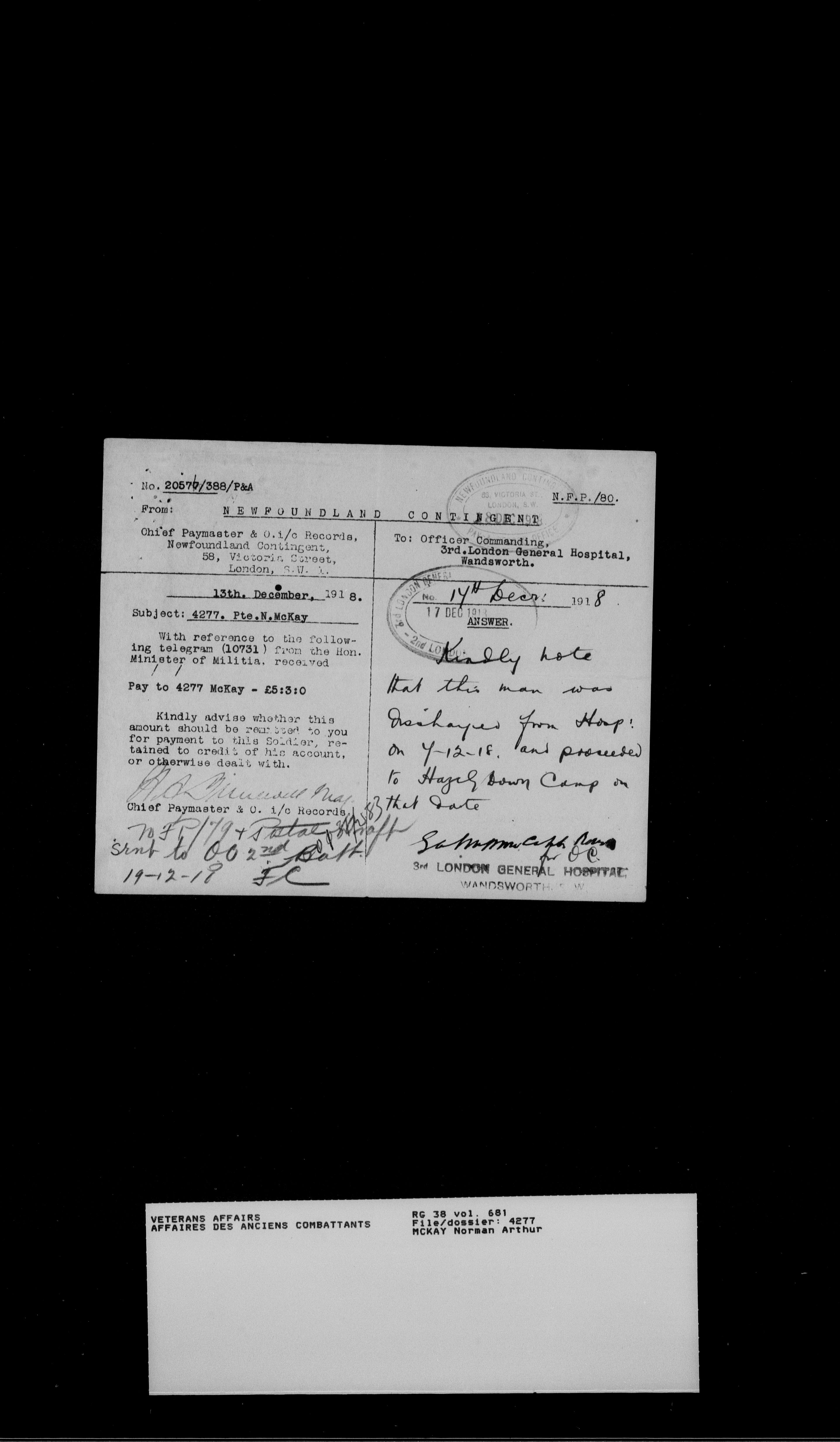Royal Newfoundland Regiment service files : T-18499