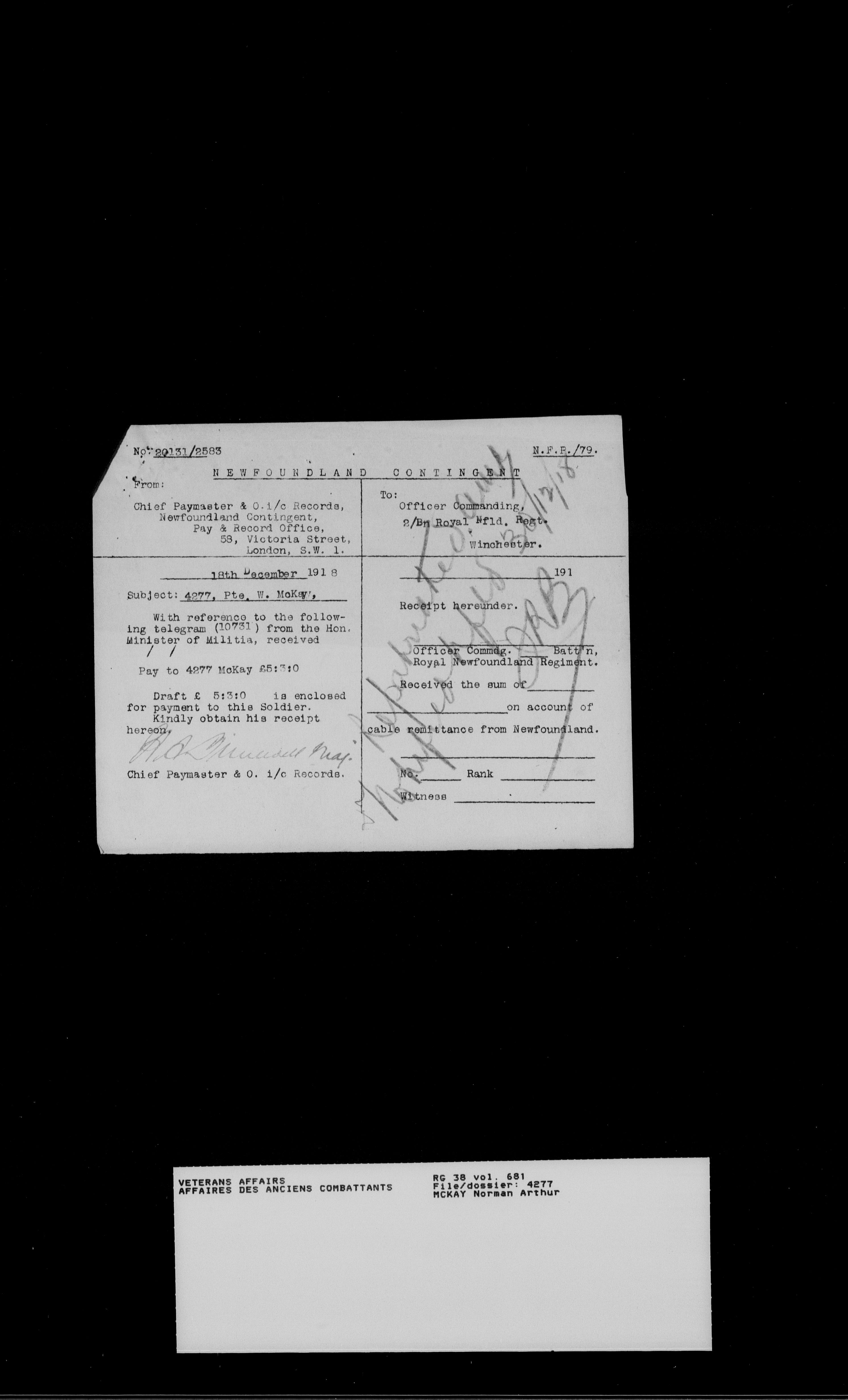 Royal Newfoundland Regiment service files : T-18499