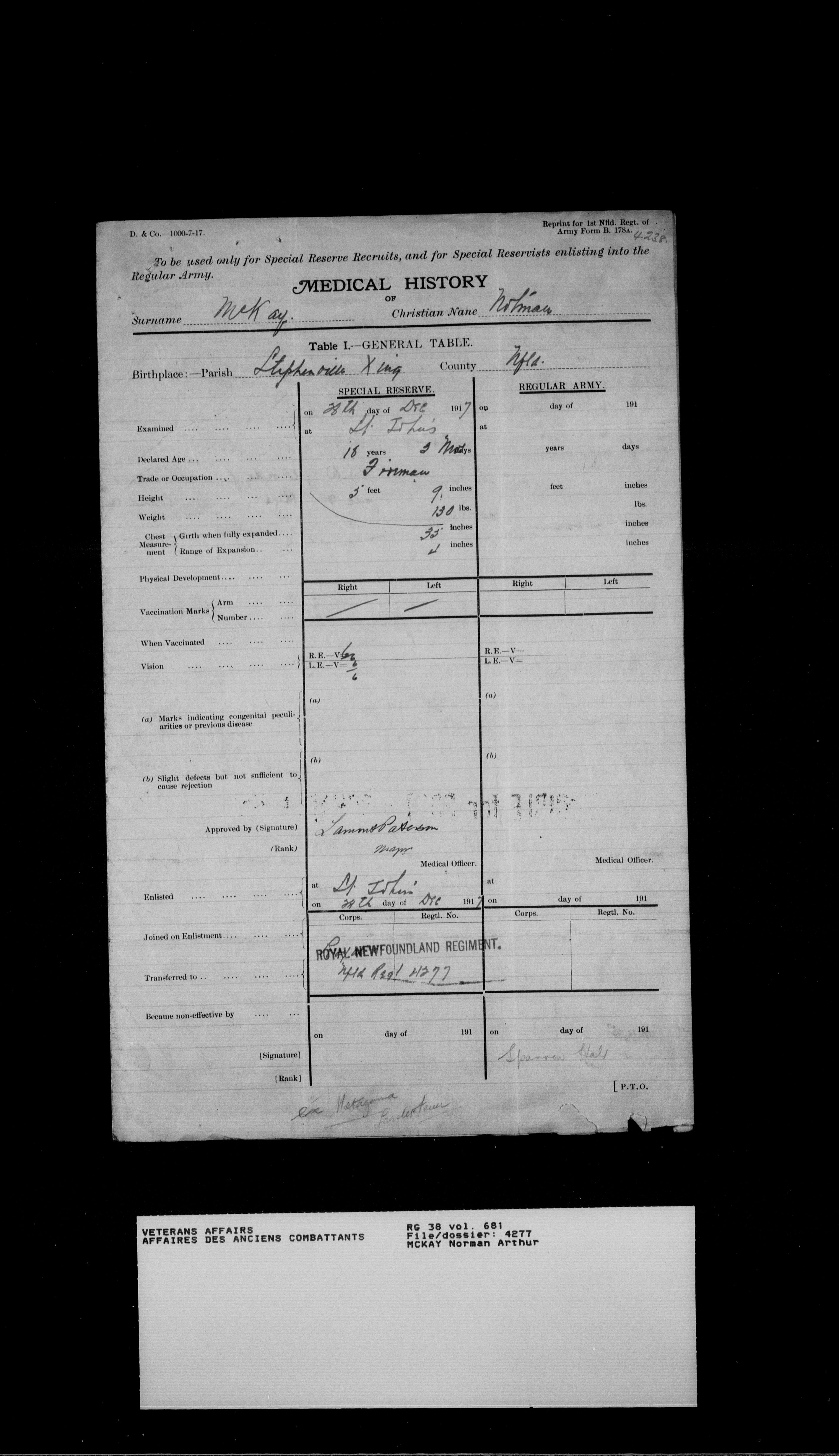 Royal Newfoundland Regiment service files : T-18499