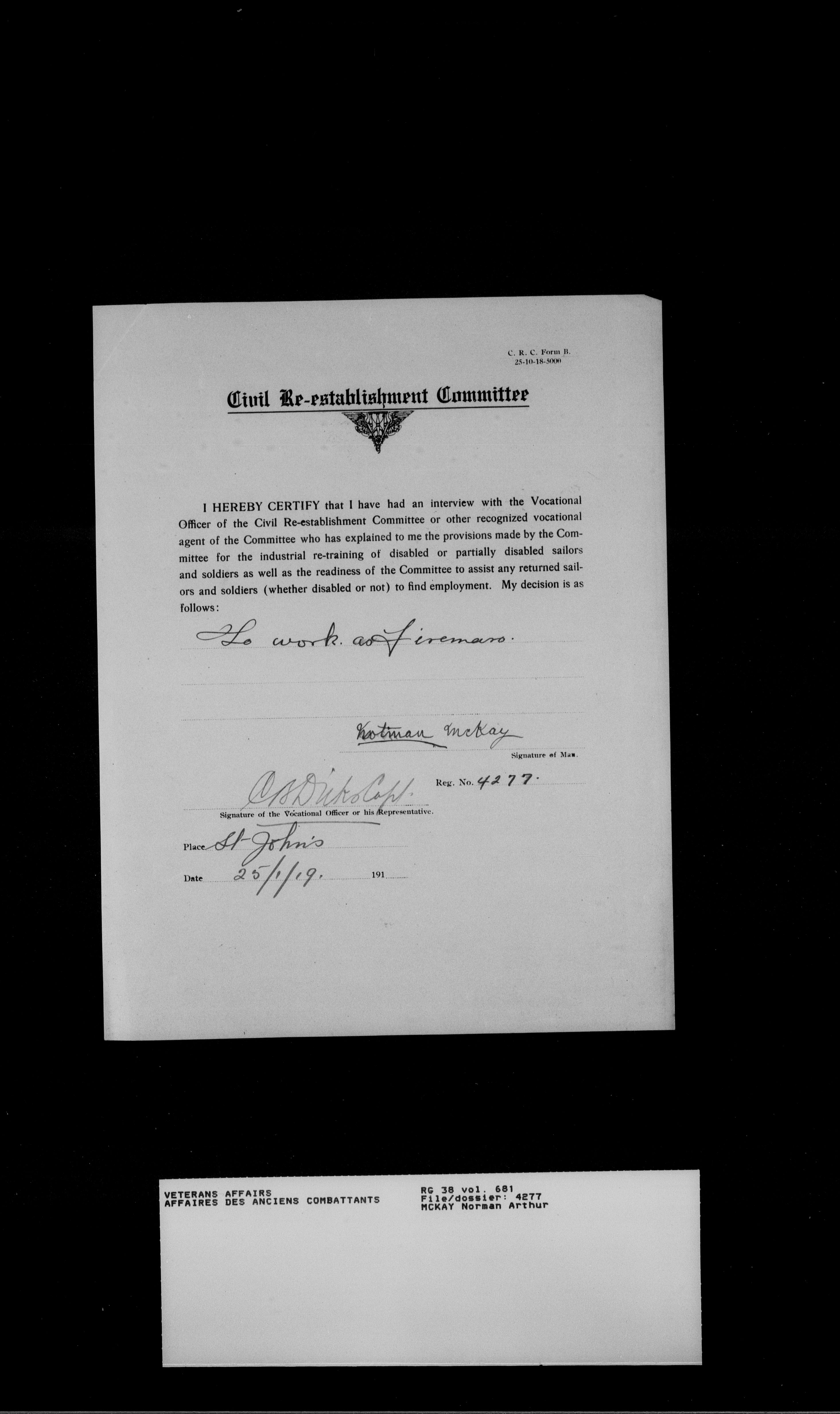 Royal Newfoundland Regiment service files : T-18499