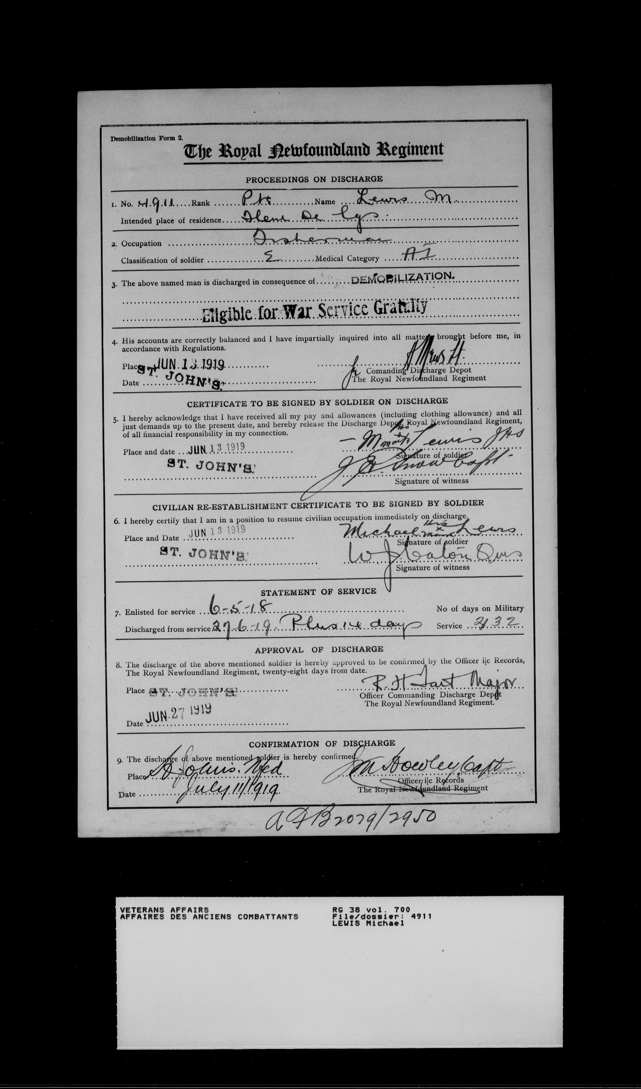 Military service files for members of the Royal Newfoundland Regiment and bandsmen and the Newfoundland Forestry Corps (1914-1919) - 18520