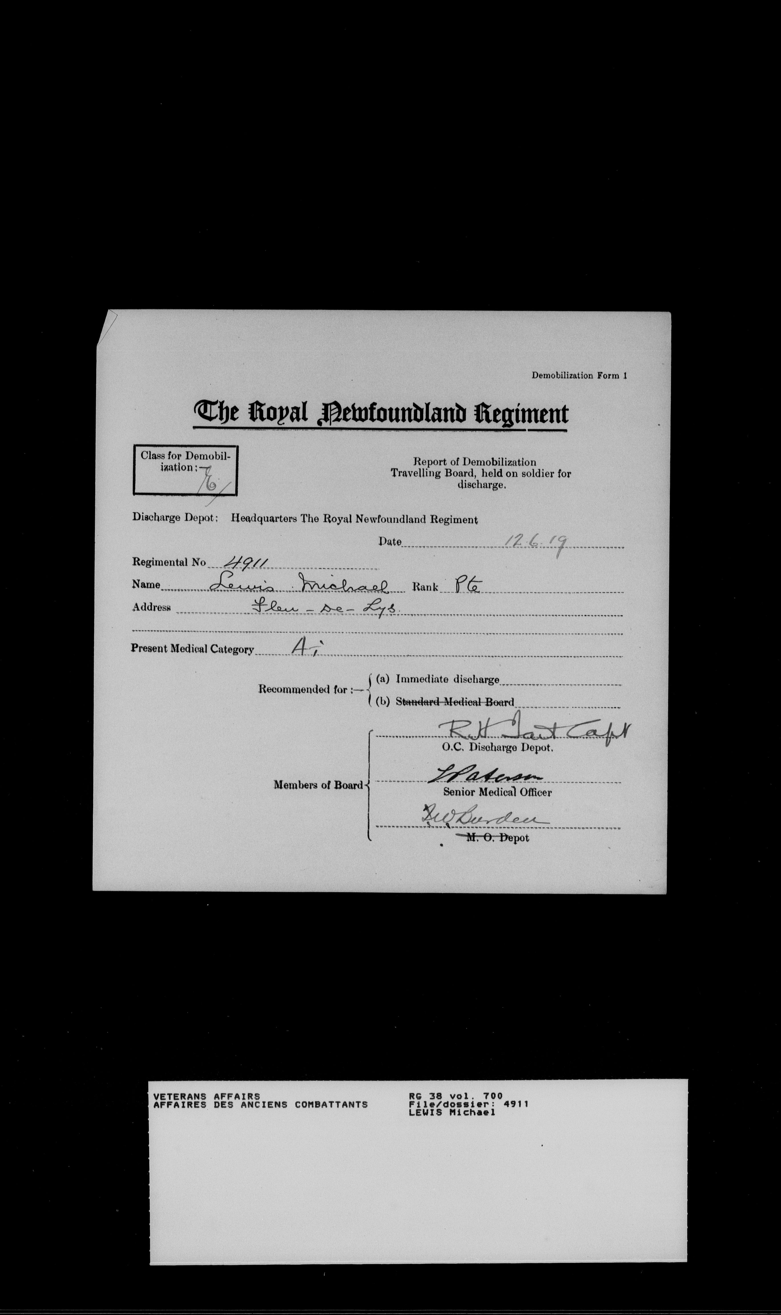 Military service files for members of the Royal Newfoundland Regiment and bandsmen and the Newfoundland Forestry Corps (1914-1919) - 18520