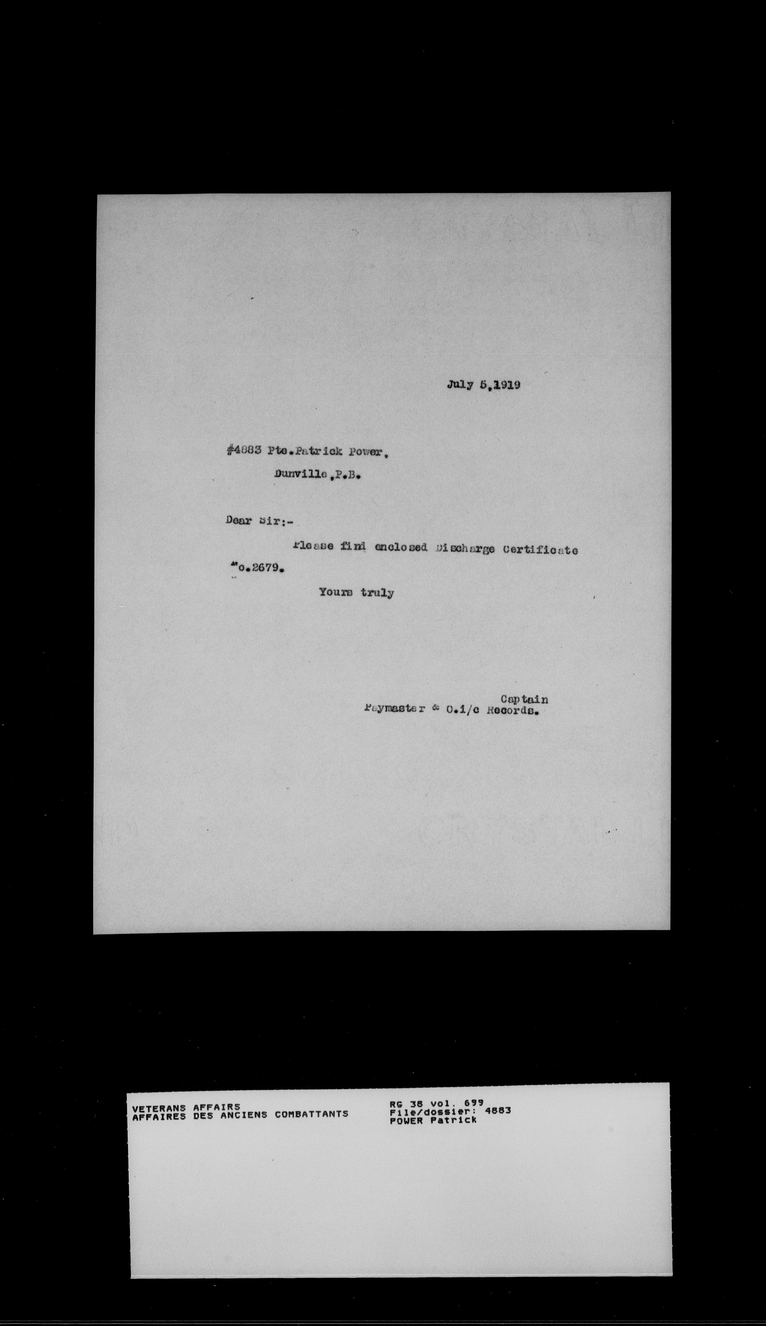 Military service files for members of the Royal Newfoundland Regiment and bandsmen and the Newfoundland Forestry Corps (1914-1919) - 18520