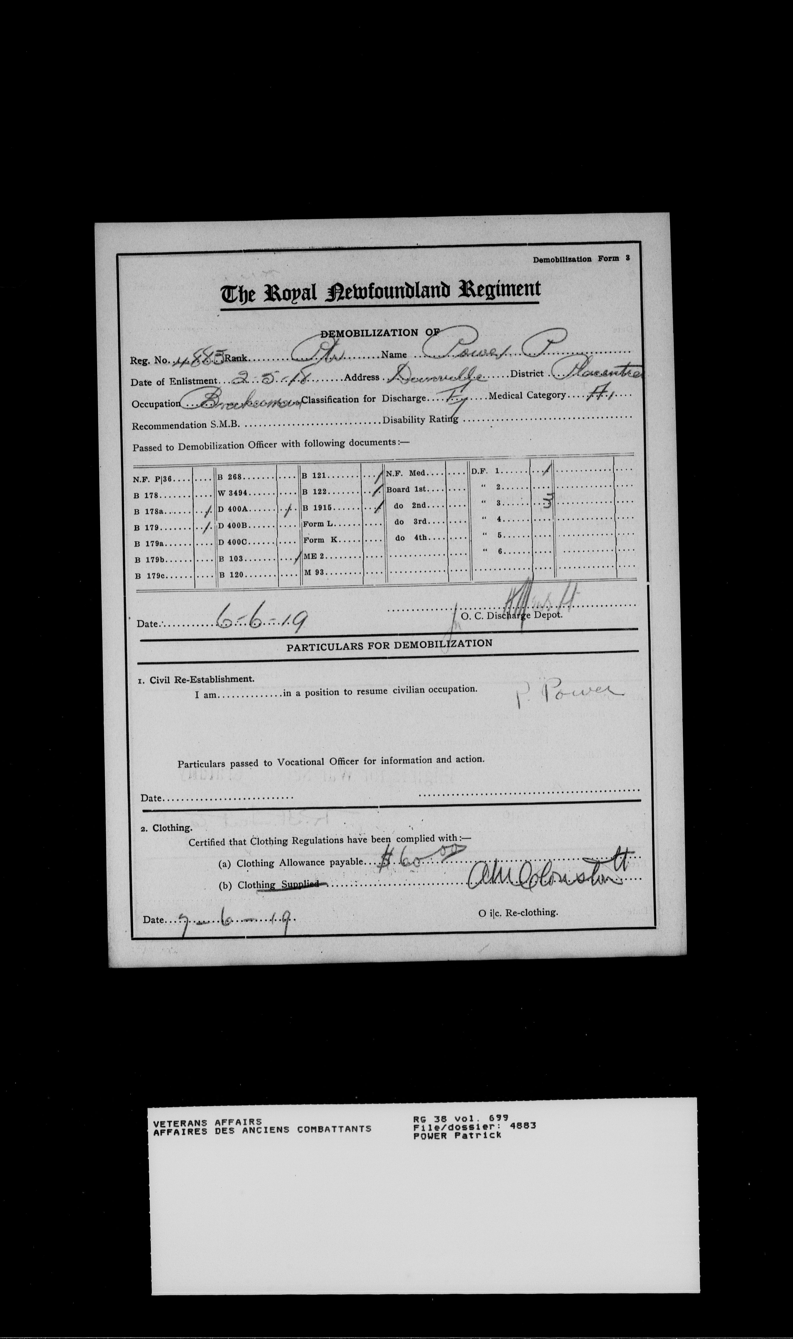 Military service files for members of the Royal Newfoundland Regiment and bandsmen and the Newfoundland Forestry Corps (1914-1919) - 18520