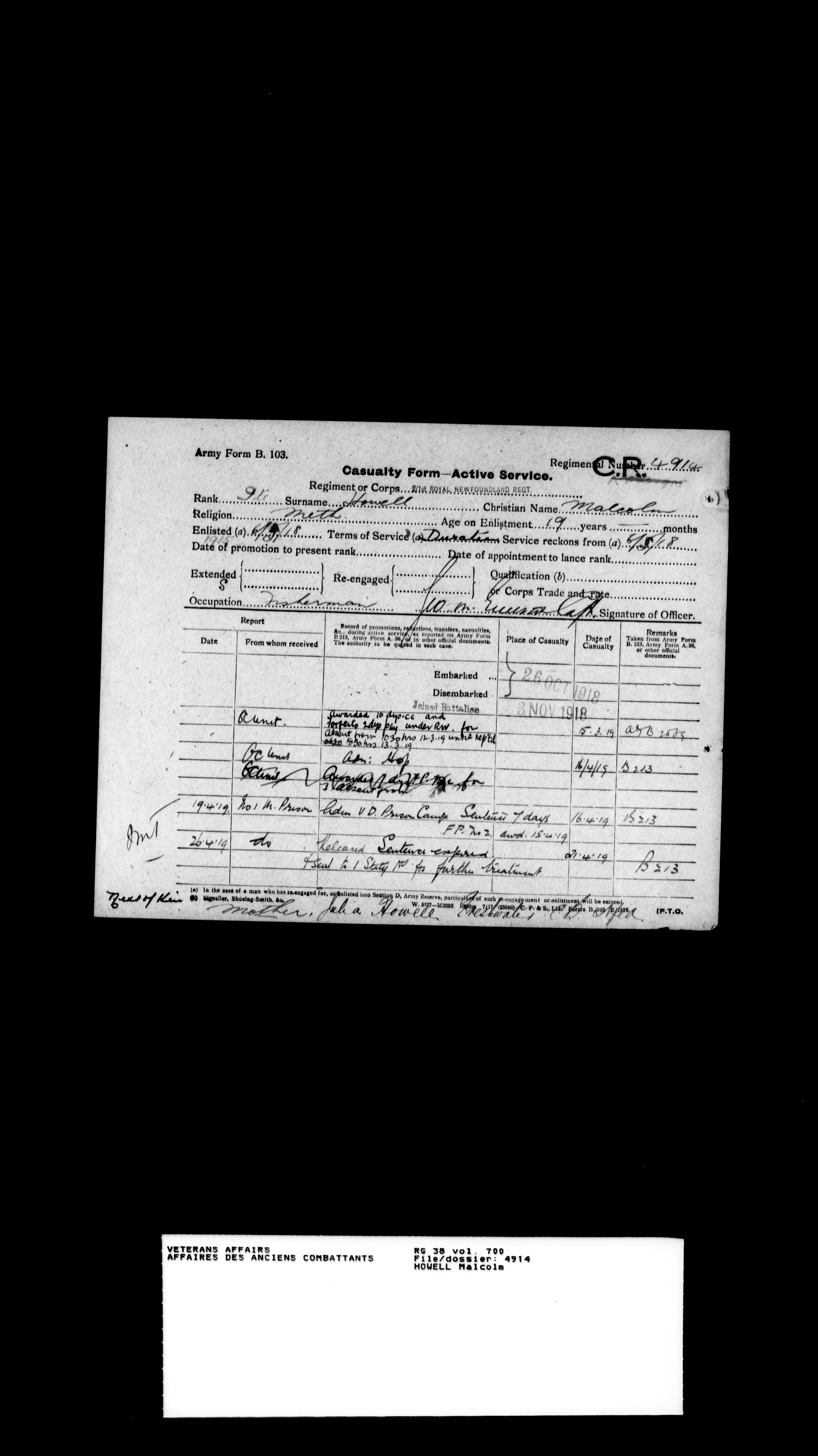 Military service files for members of the Royal Newfoundland Regiment and bandsmen and the Newfoundland Forestry Corps (1914-1919) - 18521