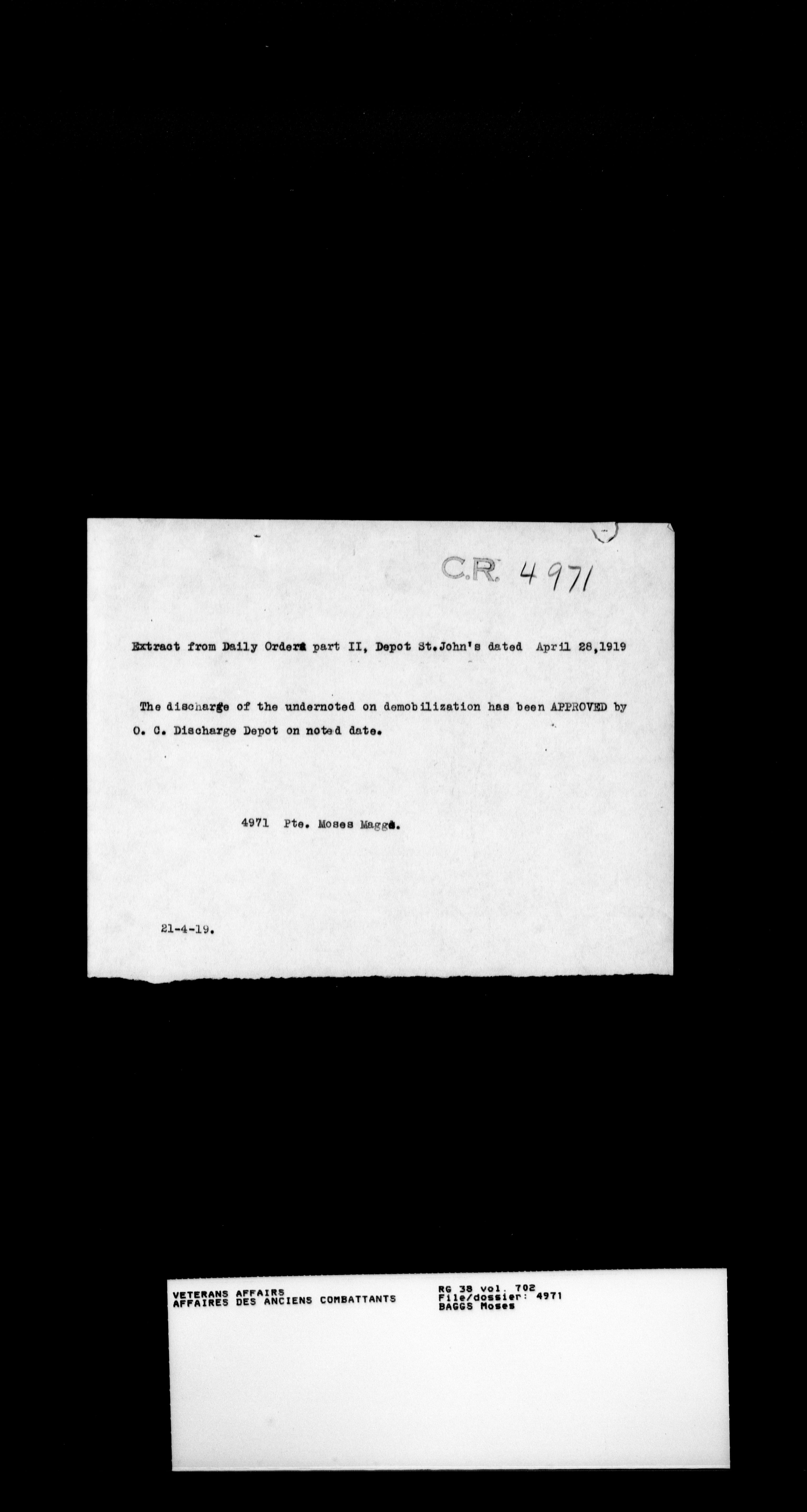 Military service files for members of the Royal Newfoundland Regiment and bandsmen and the Newfoundland Forestry Corps (1914-1919) - 18523