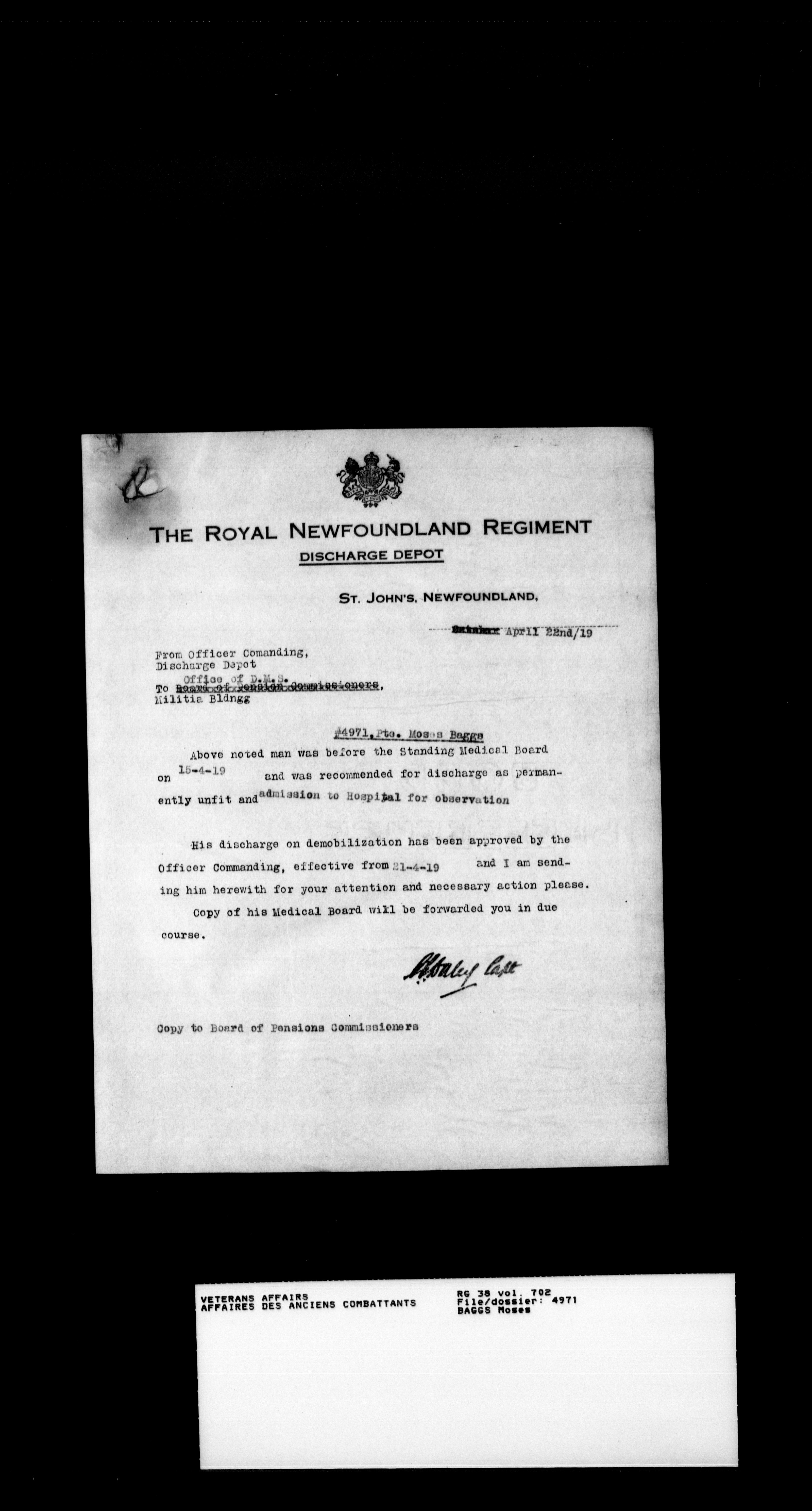 Military service files for members of the Royal Newfoundland Regiment and bandsmen and the Newfoundland Forestry Corps (1914-1919) - 18523
