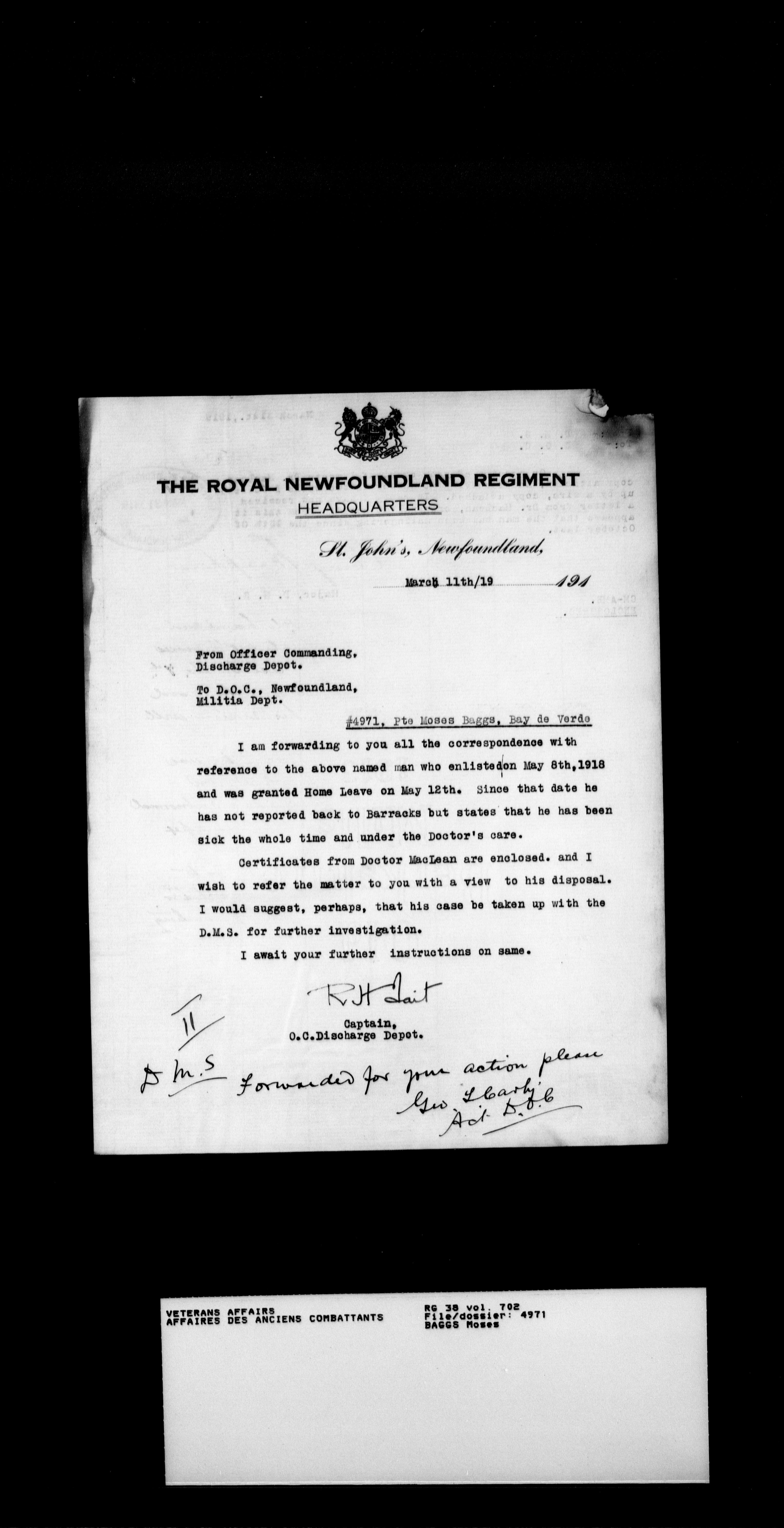 Military service files for members of the Royal Newfoundland Regiment and bandsmen and the Newfoundland Forestry Corps (1914-1919) - 18523