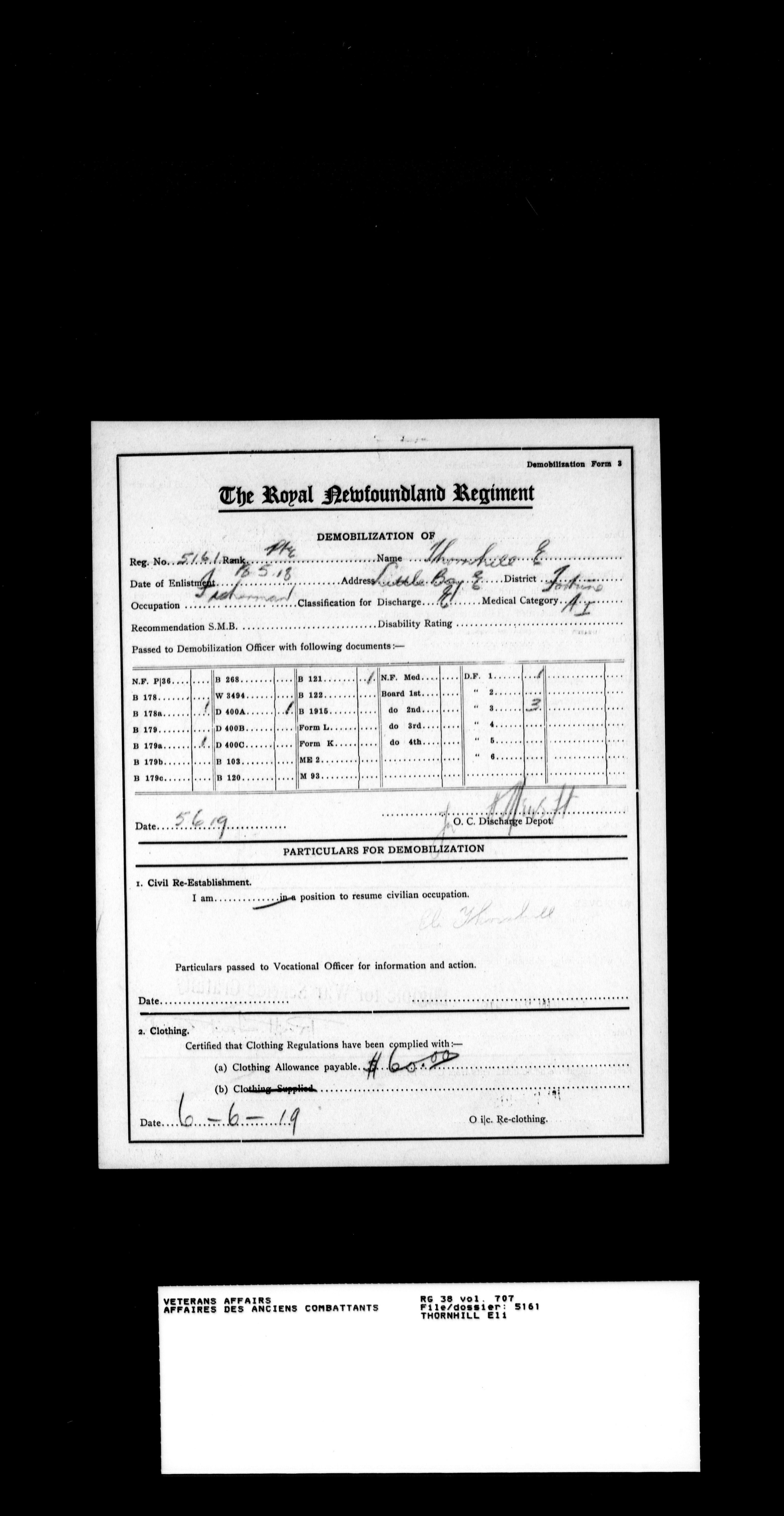 Military service files for members of the Royal Newfoundland Regiment and bandsmen and the Newfoundland Forestry Corps (1914-1919) - 18529