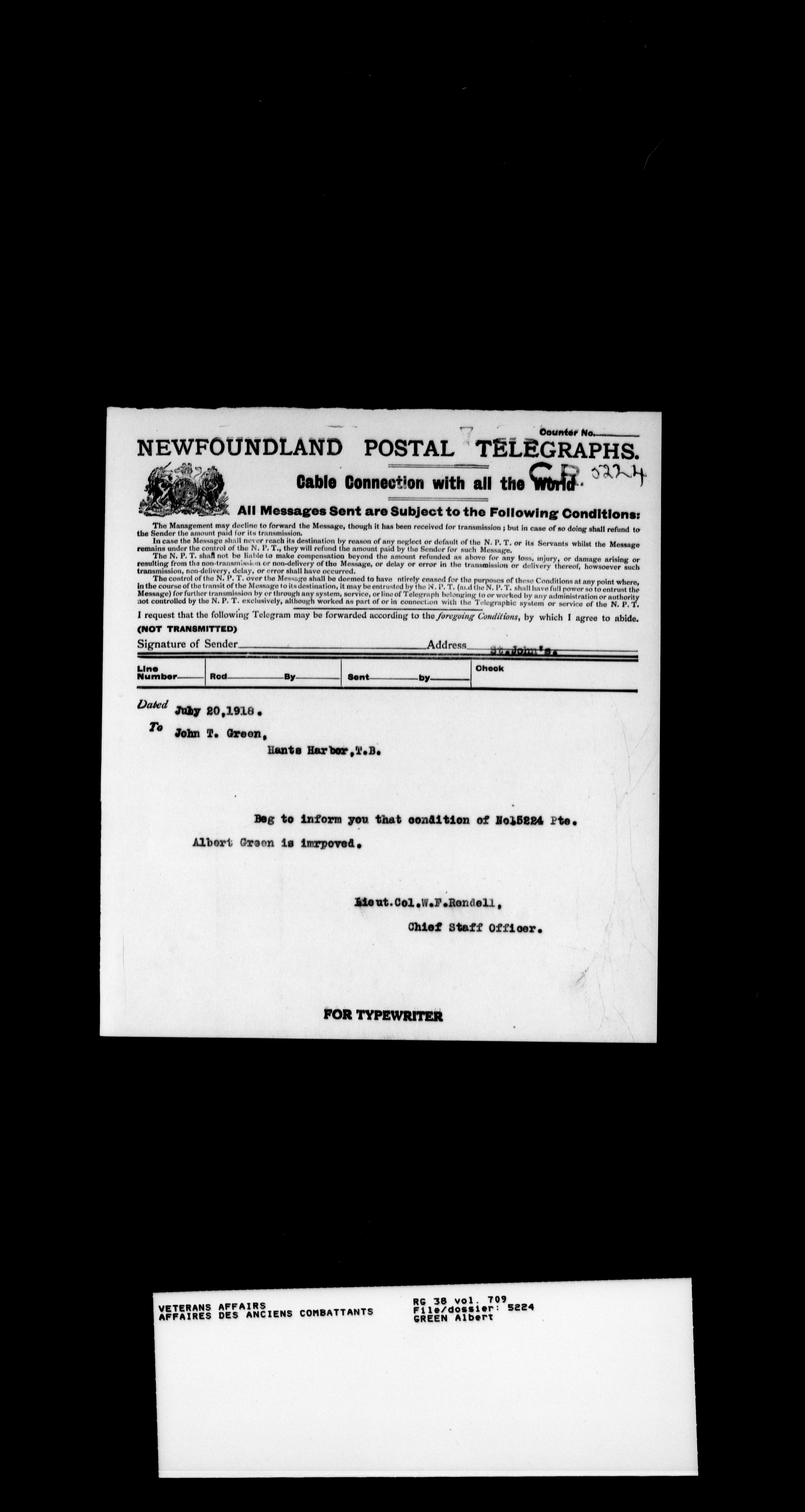 Military service files for members of the Royal Newfoundland Regiment and bandsmen and the Newfoundland Forestry Corps (1914-1919) - 18531