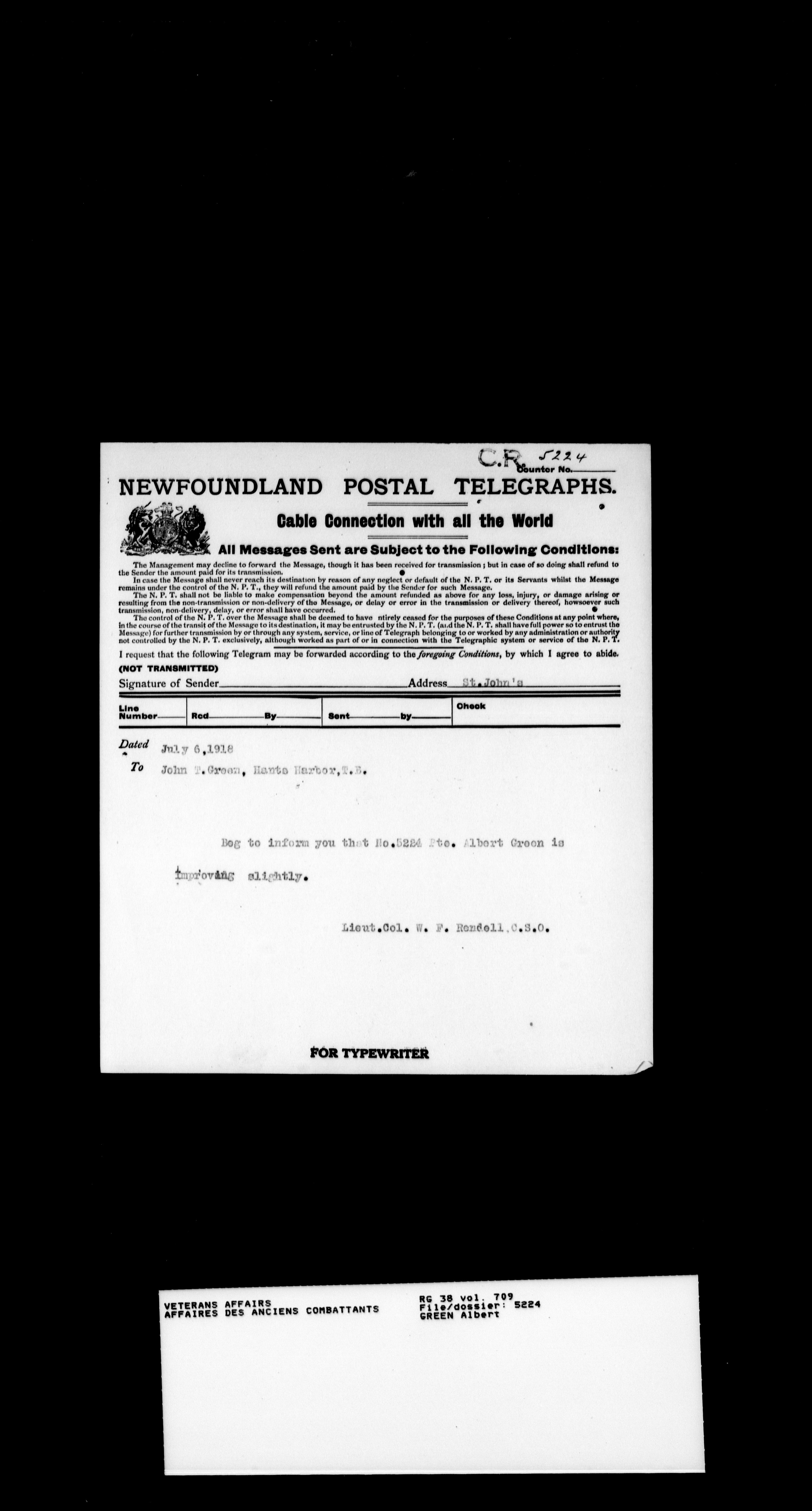 Military service files for members of the Royal Newfoundland Regiment and bandsmen and the Newfoundland Forestry Corps (1914-1919) - 18531