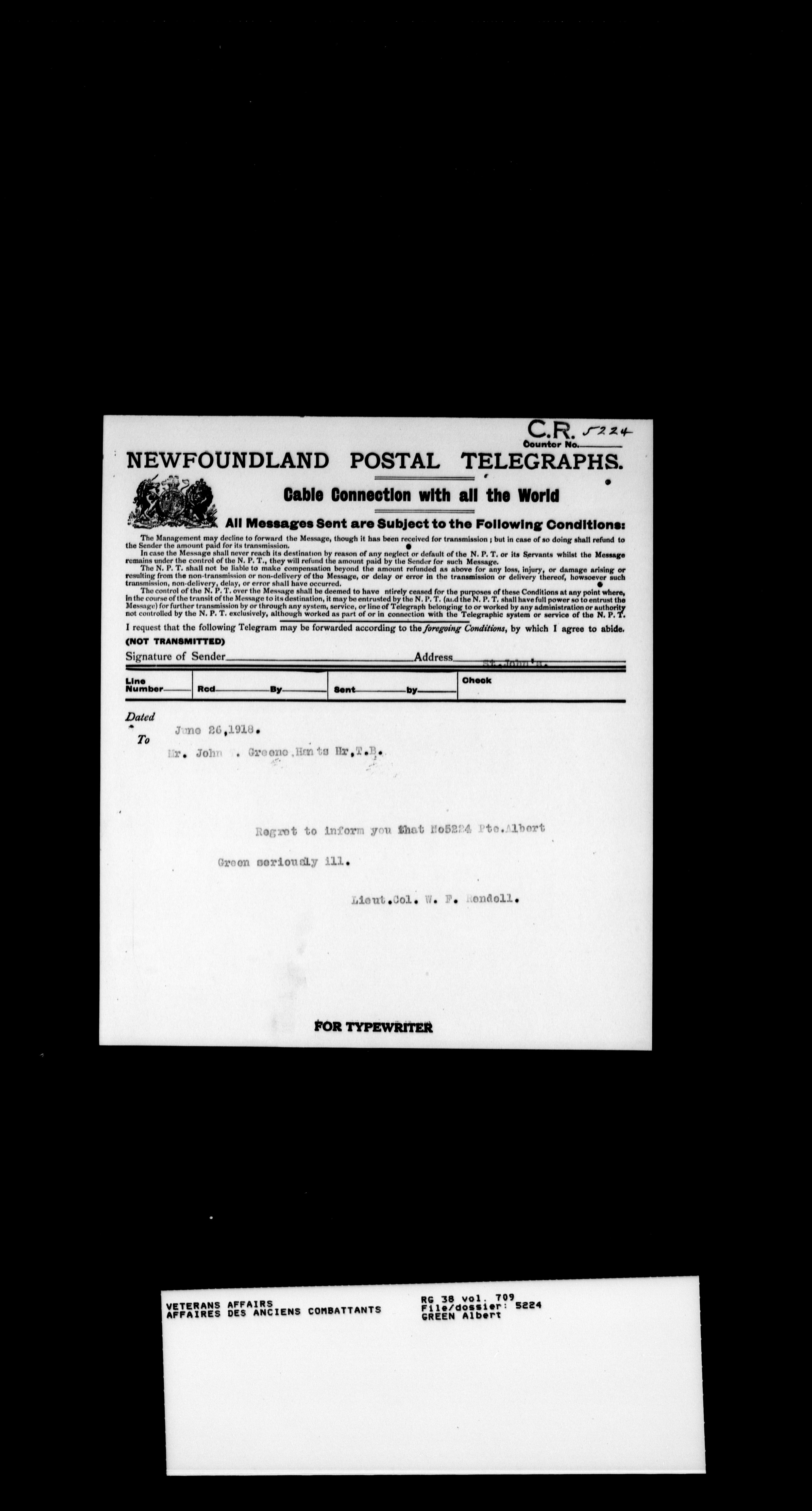 Military service files for members of the Royal Newfoundland Regiment and bandsmen and the Newfoundland Forestry Corps (1914-1919) - 18531