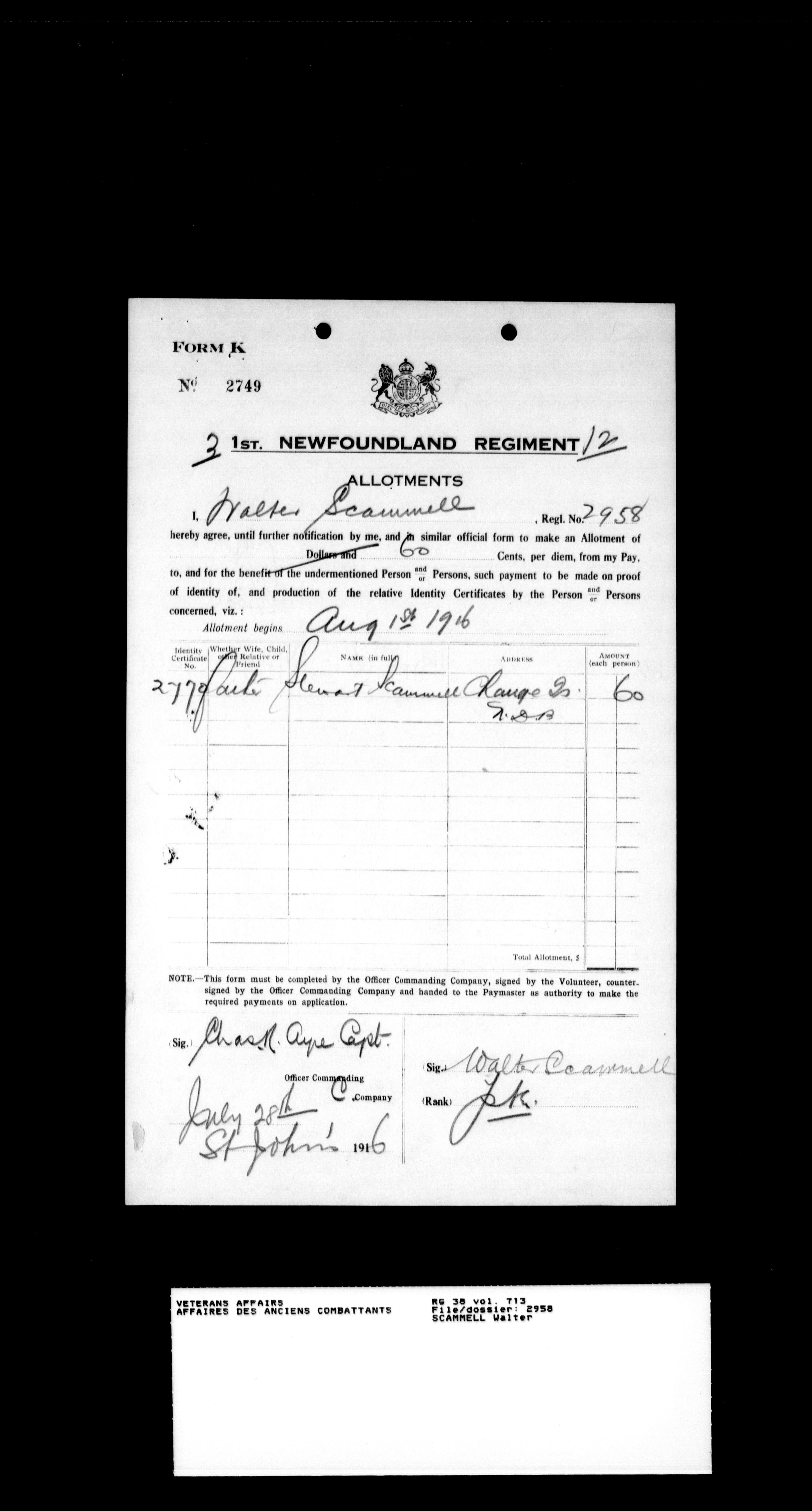 Military service files for members of the Royal Newfoundland Regiment and bandsmen and the Newfoundland Forestry Corps (1914-1919) - 18535