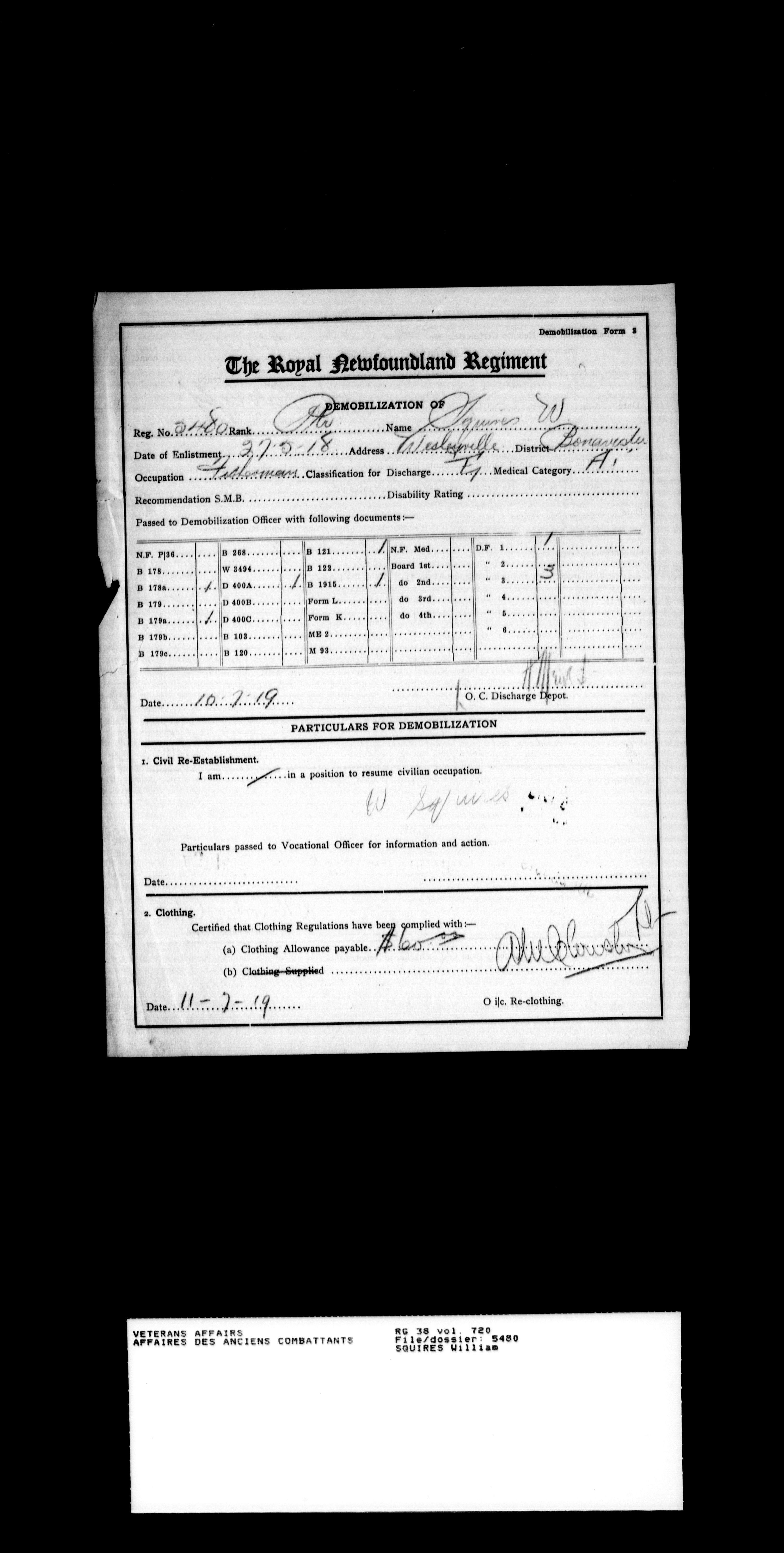 Military service files for members of the Royal Newfoundland Regiment and bandsmen and the Newfoundland Forestry Corps (1914-1919) - 18544