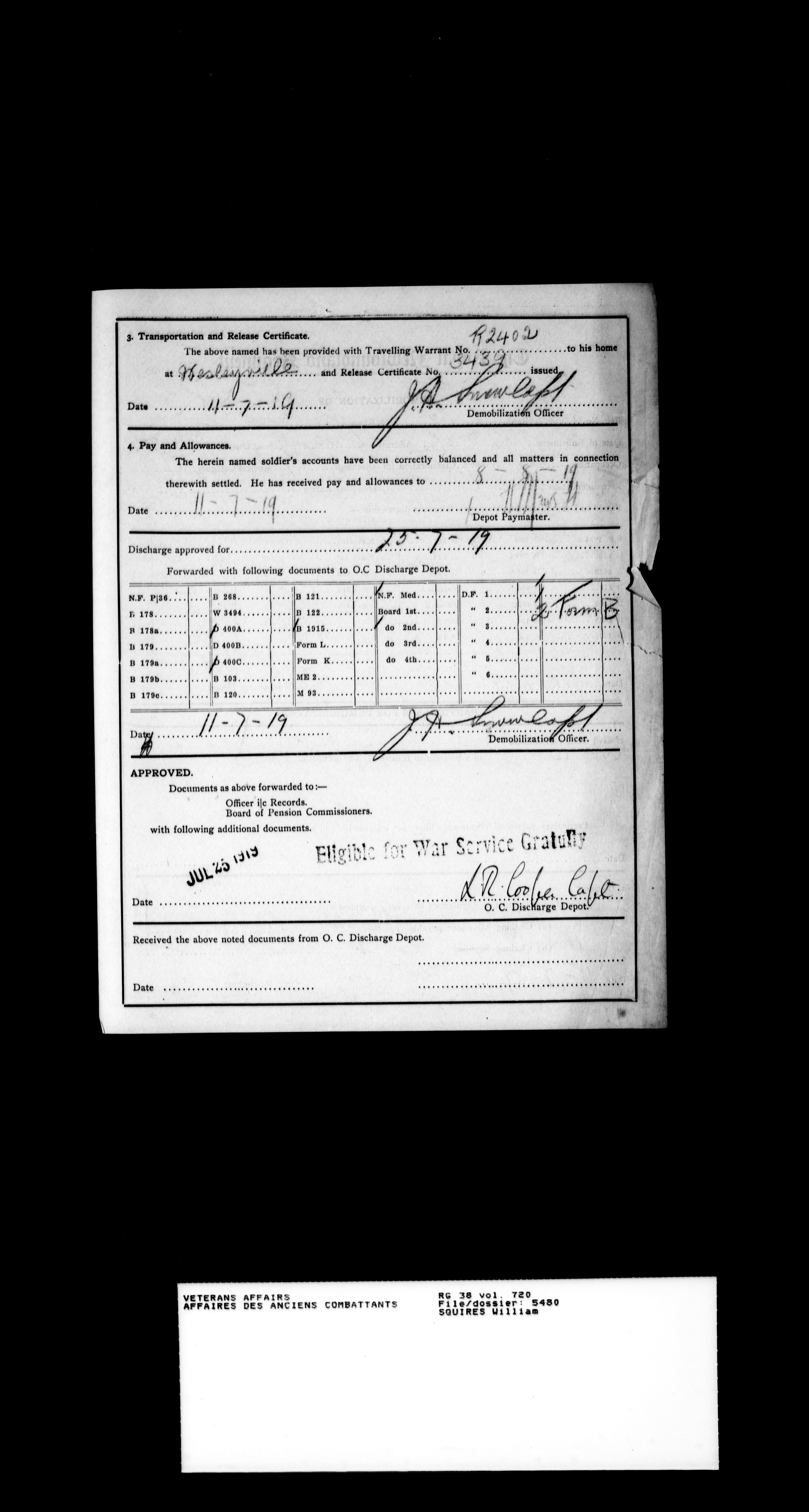 Military service files for members of the Royal Newfoundland Regiment and bandsmen and the Newfoundland Forestry Corps (1914-1919) - 18544