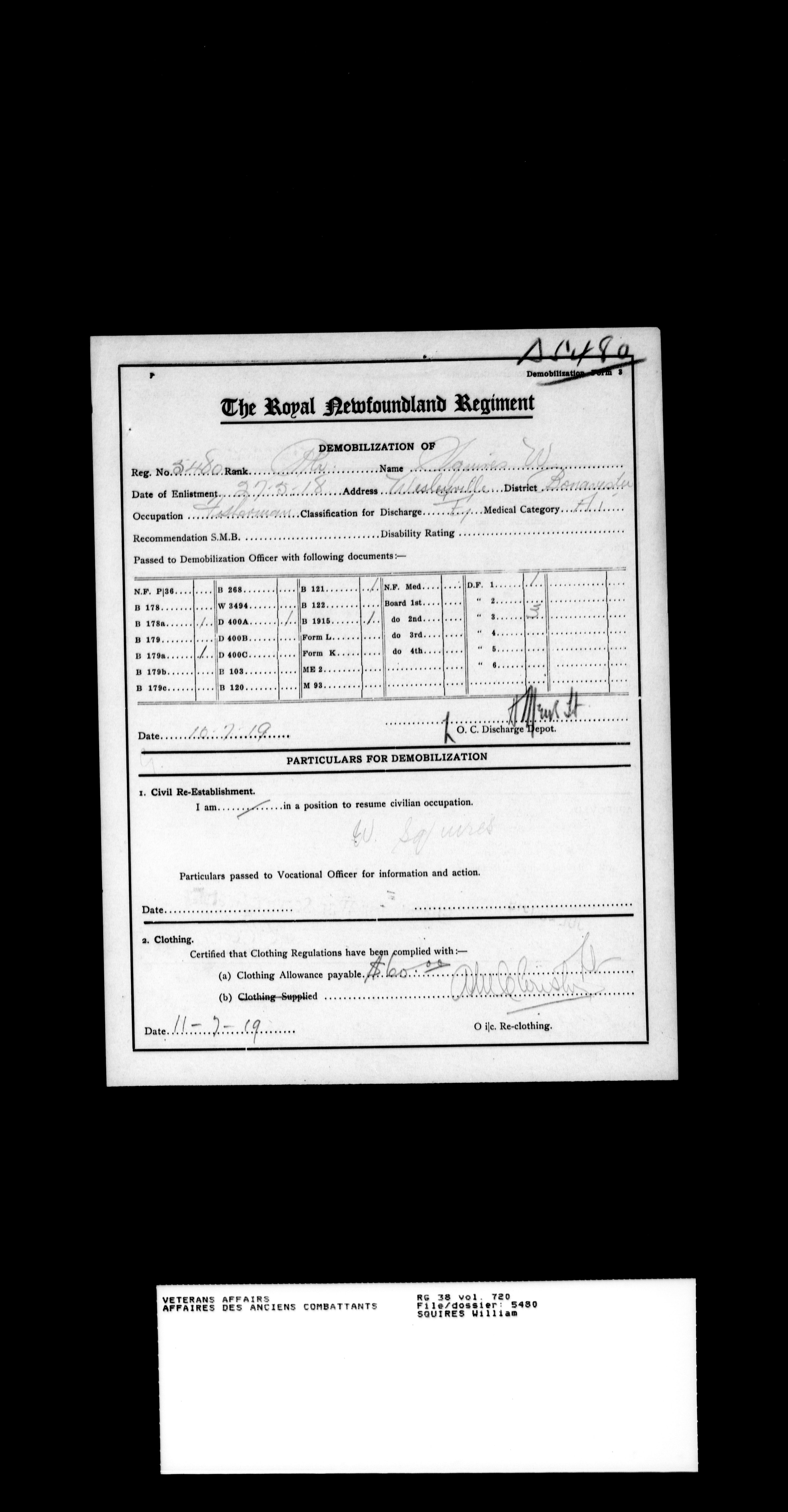 Military service files for members of the Royal Newfoundland Regiment and bandsmen and the Newfoundland Forestry Corps (1914-1919) - 18544