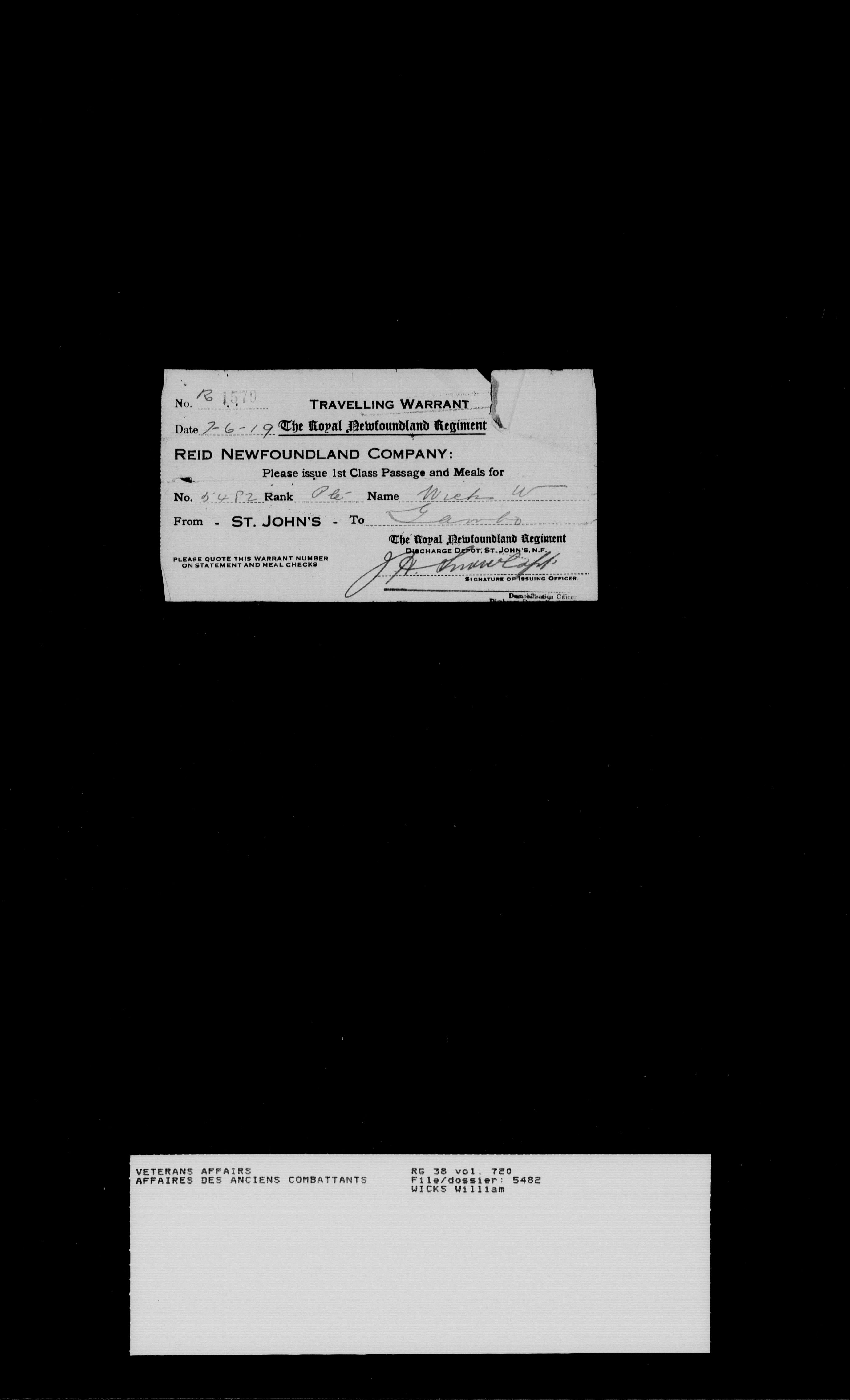 Military service files for members of the Royal Newfoundland Regiment and bandsmen and the Newfoundland Forestry Corps (1914-1919) - 18545