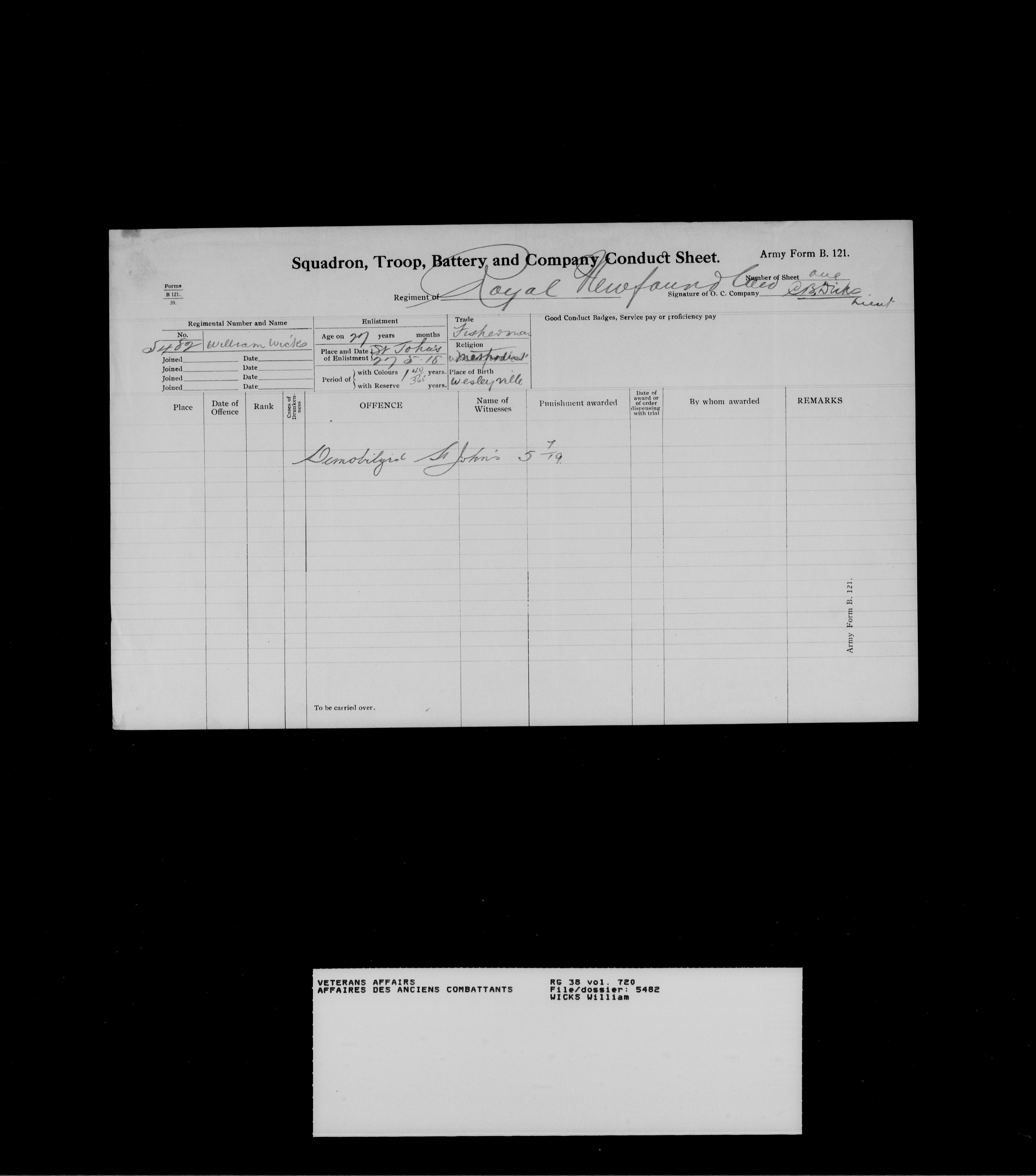 Military service files for members of the Royal Newfoundland Regiment and bandsmen and the Newfoundland Forestry Corps (1914-1919) - 18545