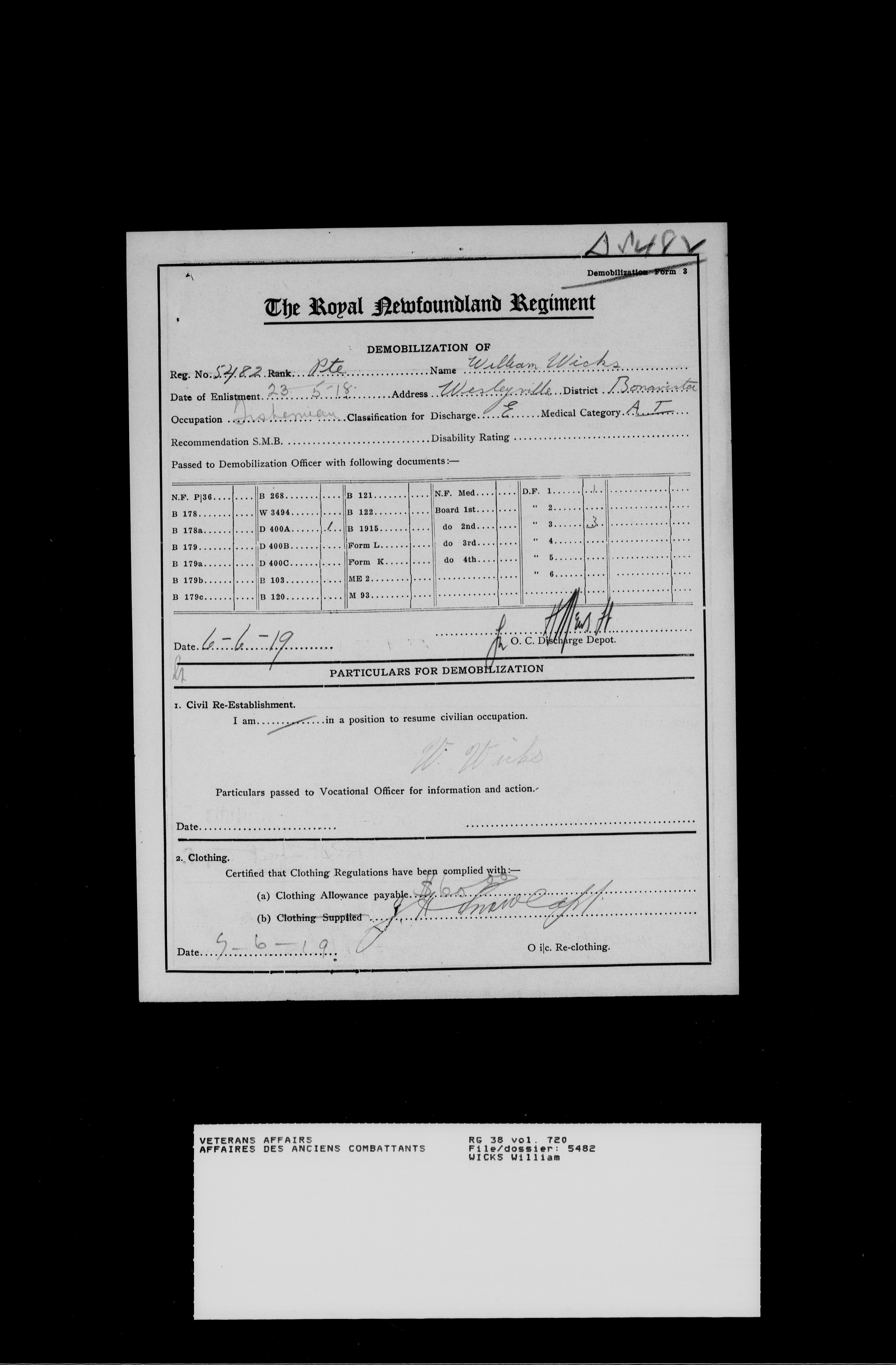 Military service files for members of the Royal Newfoundland Regiment and bandsmen and the Newfoundland Forestry Corps (1914-1919) - 18545