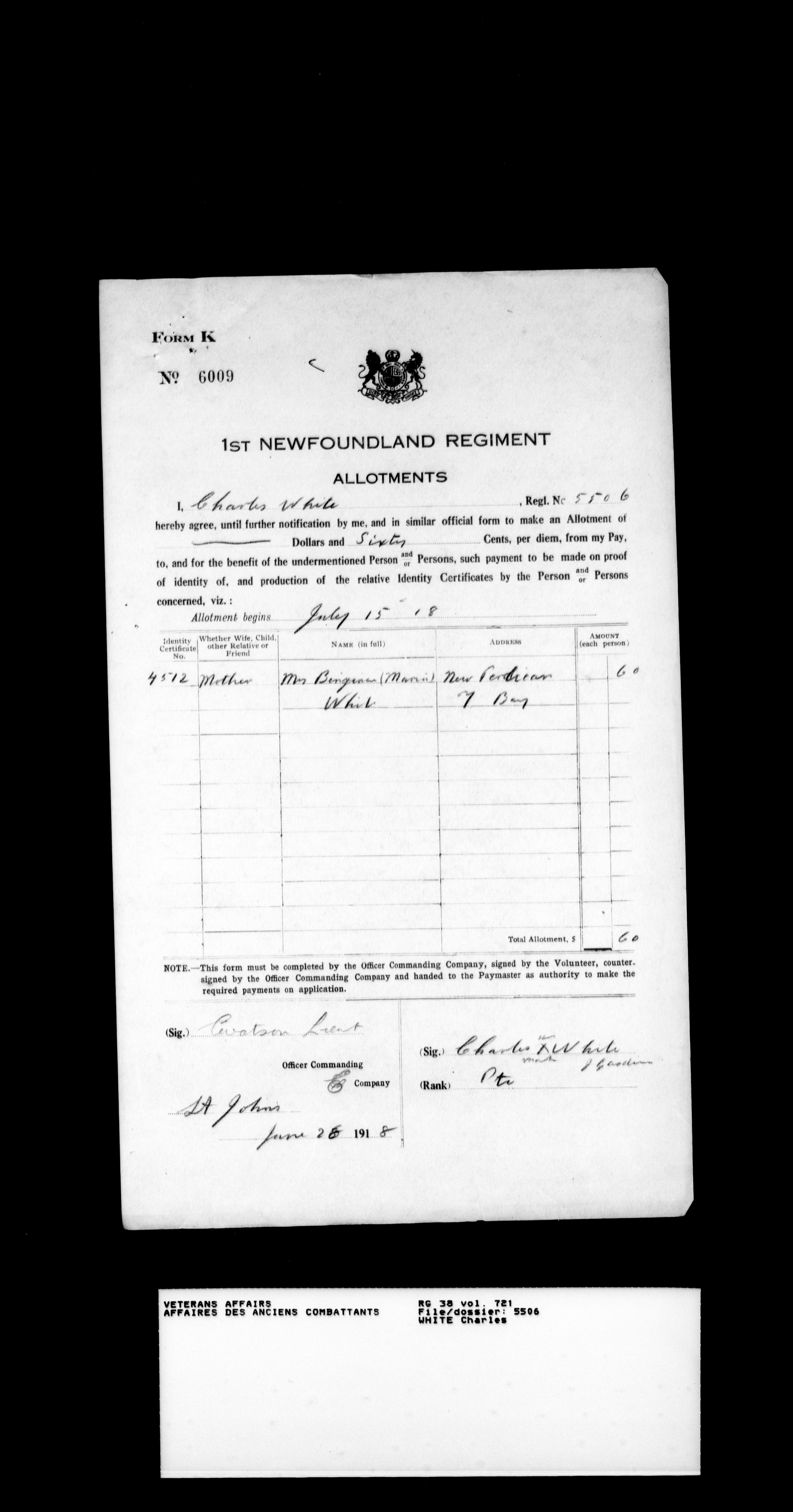 Military service files for members of the Royal Newfoundland Regiment and bandsmen and the Newfoundland Forestry Corps (1914-1919) - 18546
