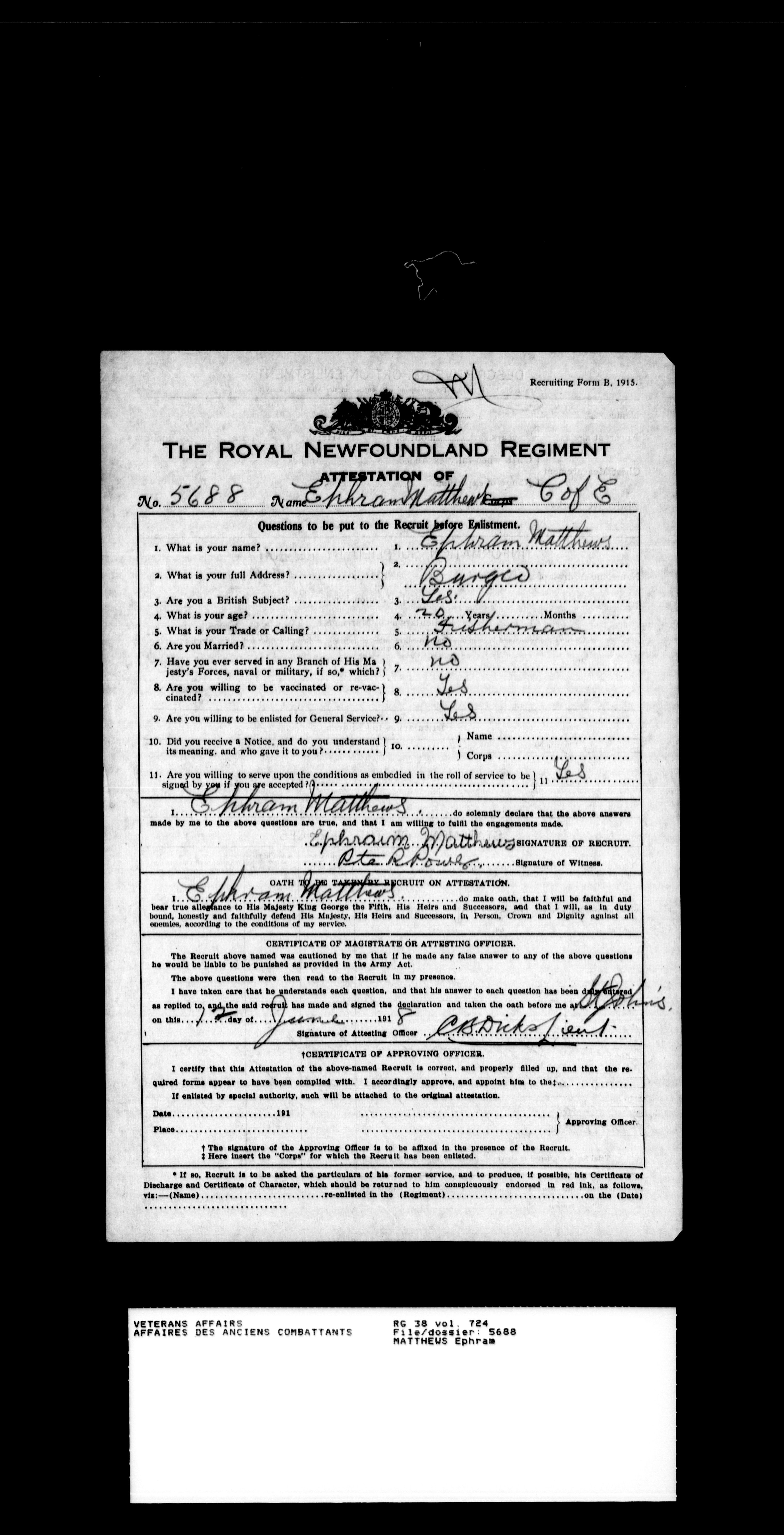 Royal Newfoundland Regiment service files : T-18550