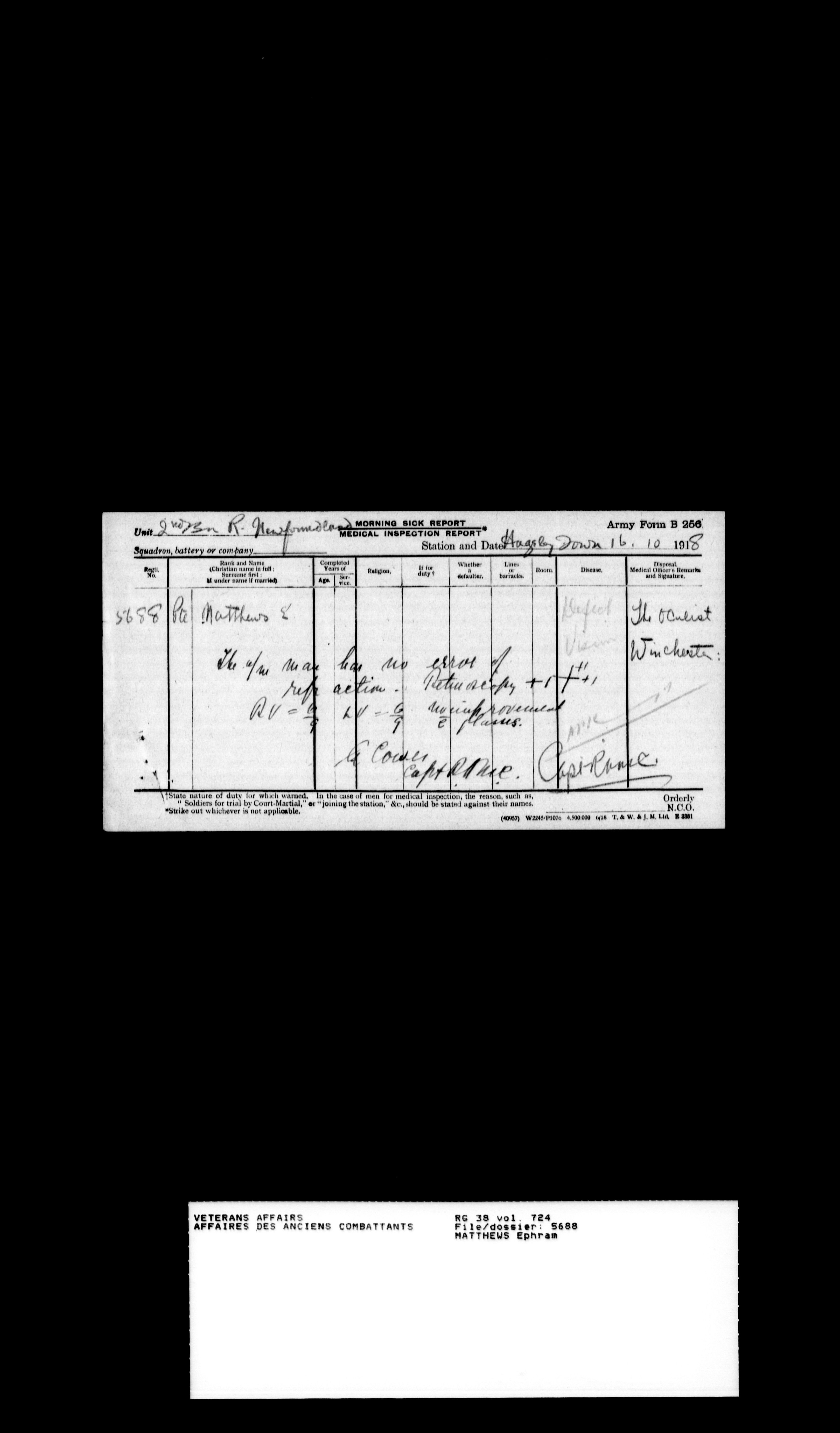 Military service files for members of the Royal Newfoundland Regiment and bandsmen and the Newfoundland Forestry Corps (1914-1919) - 18550