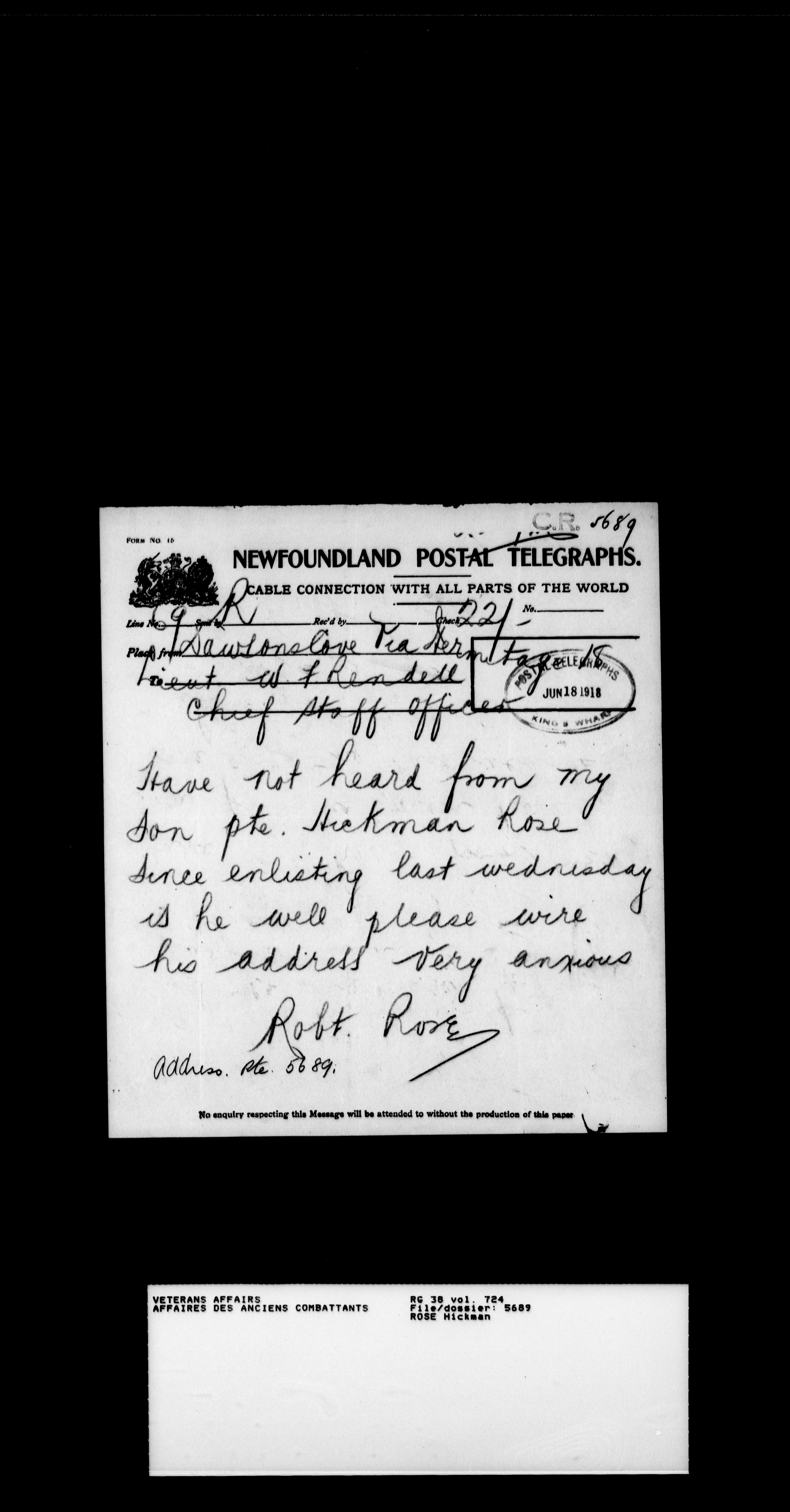 Royal Newfoundland Regiment service files : T-18550