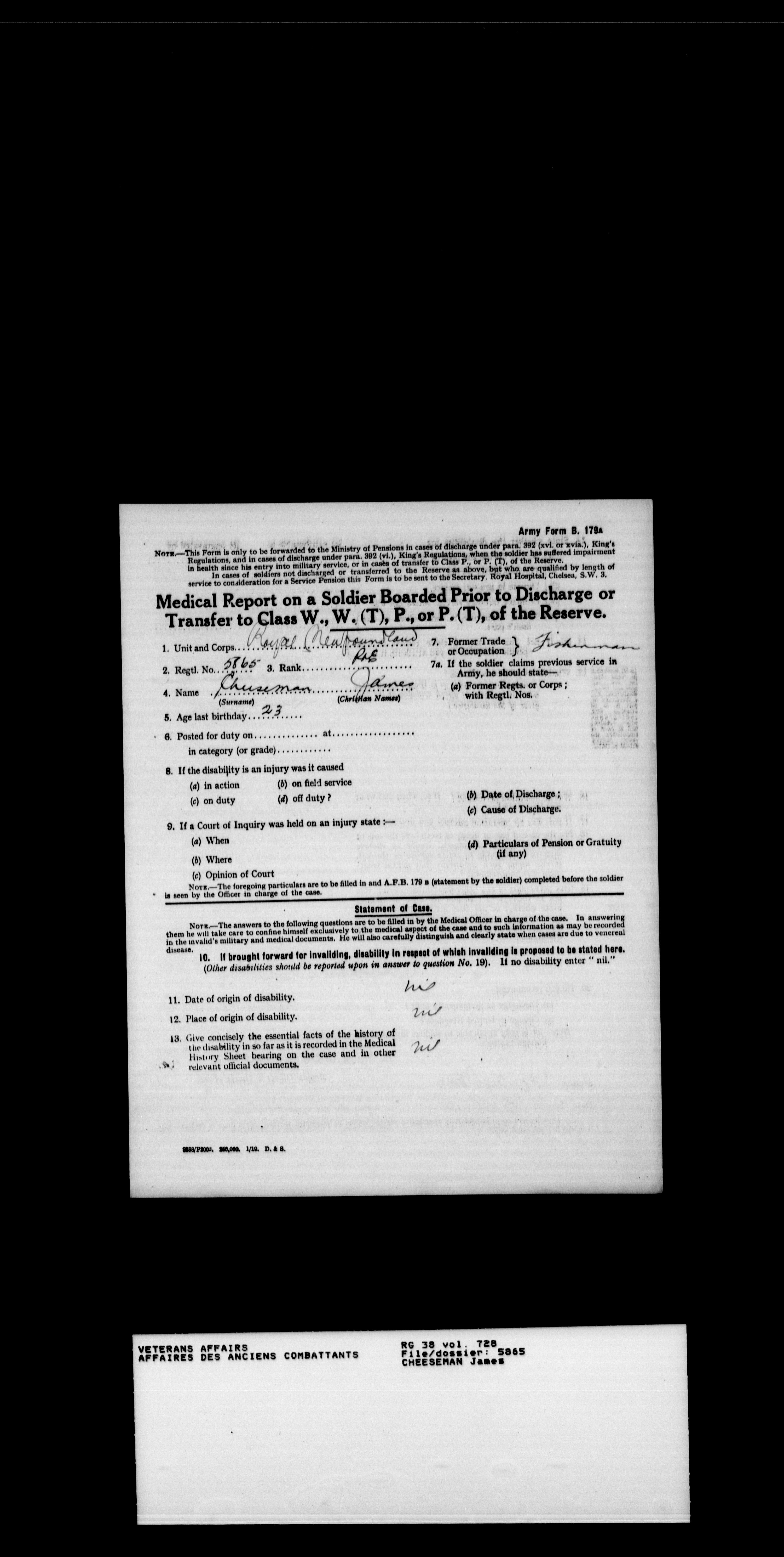 Military service files for members of the Royal Newfoundland Regiment and bandsmen and the Newfoundland Forestry Corps (1914-1919) - 18552