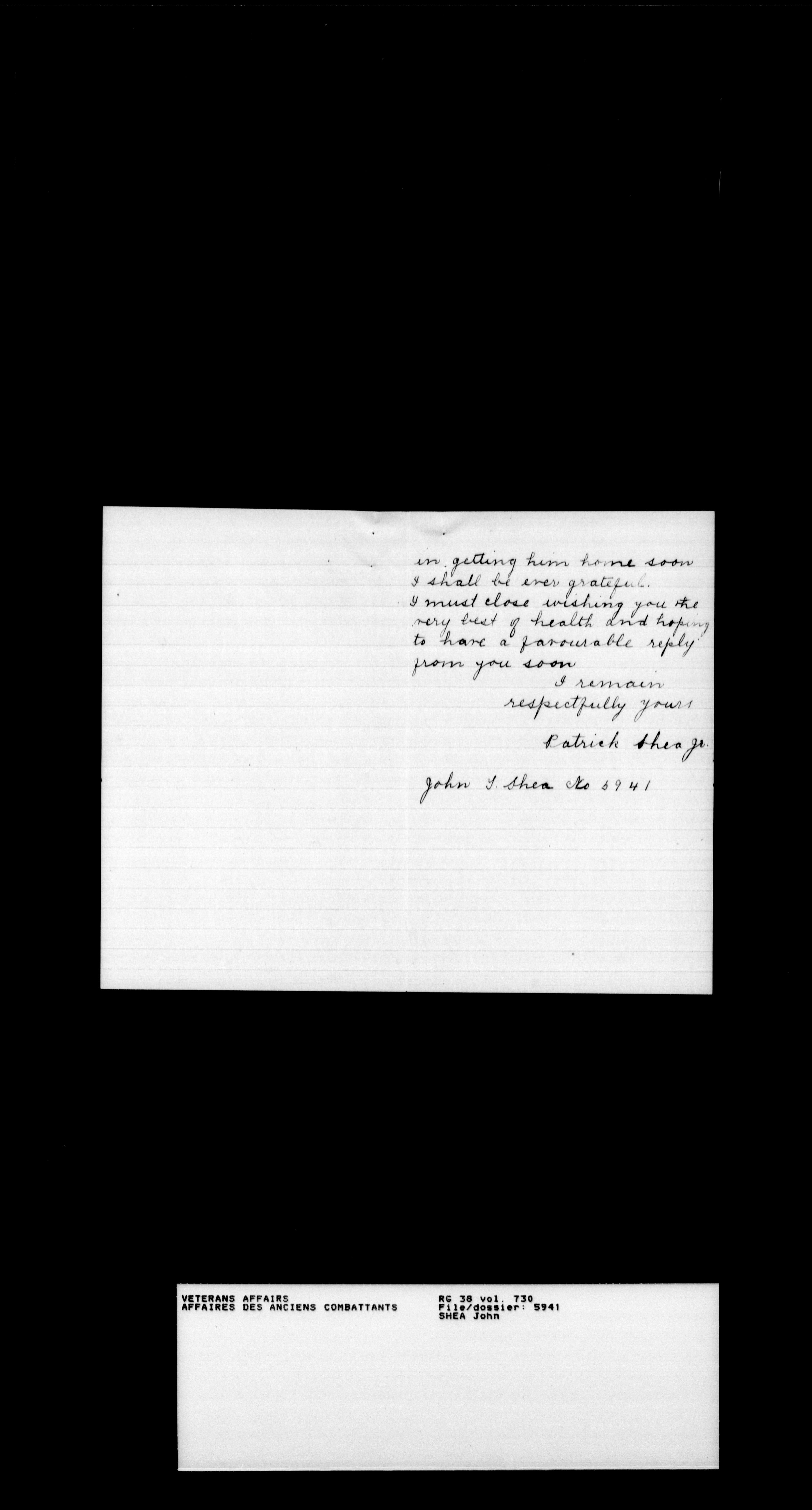 Military service files for members of the Royal Newfoundland Regiment and bandsmen and the Newfoundland Forestry Corps (1914-1919) - 18555