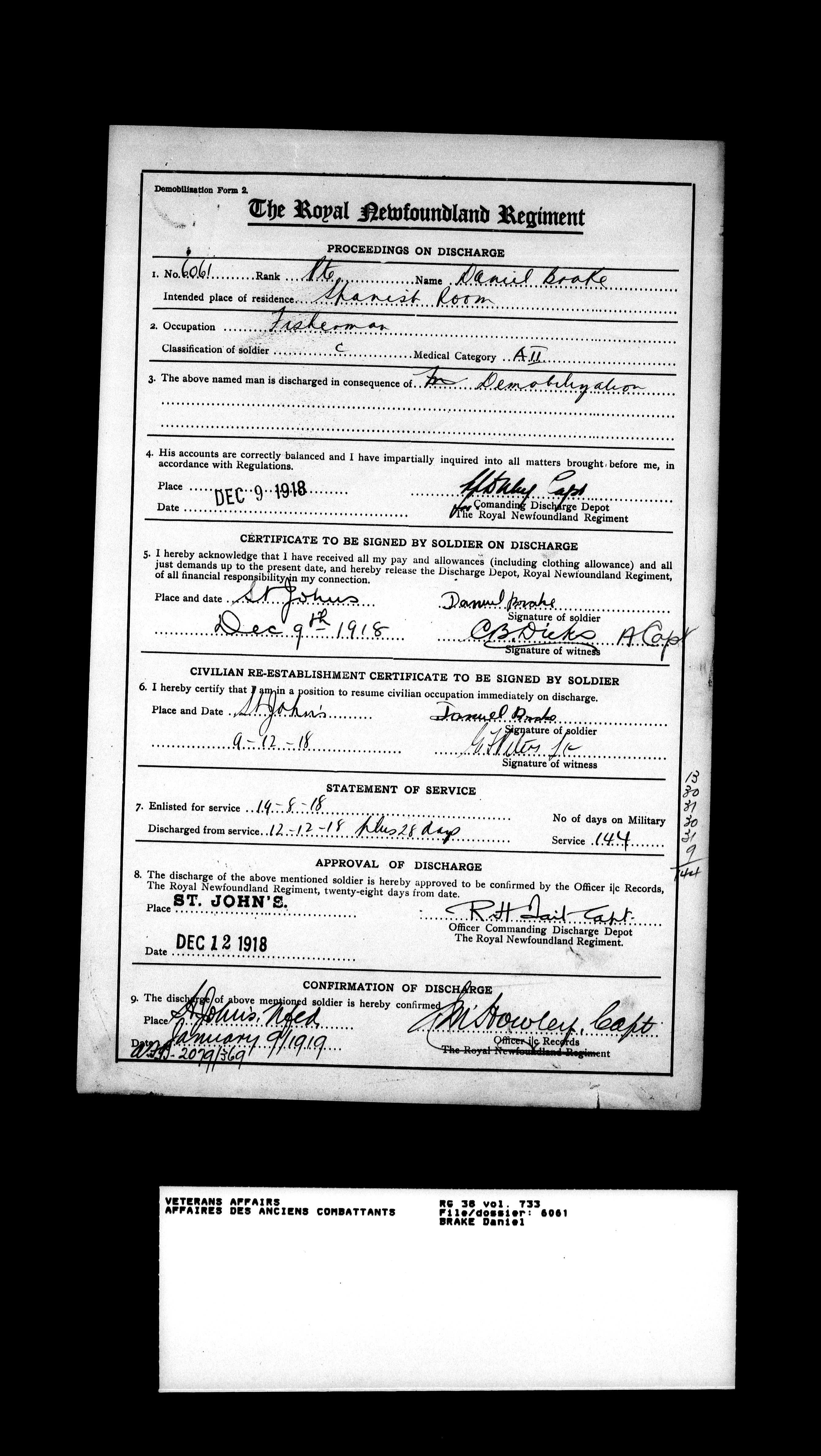 Military service files for members of the Royal Newfoundland Regiment and bandsmen and the Newfoundland Forestry Corps (1914-1919) - 18558