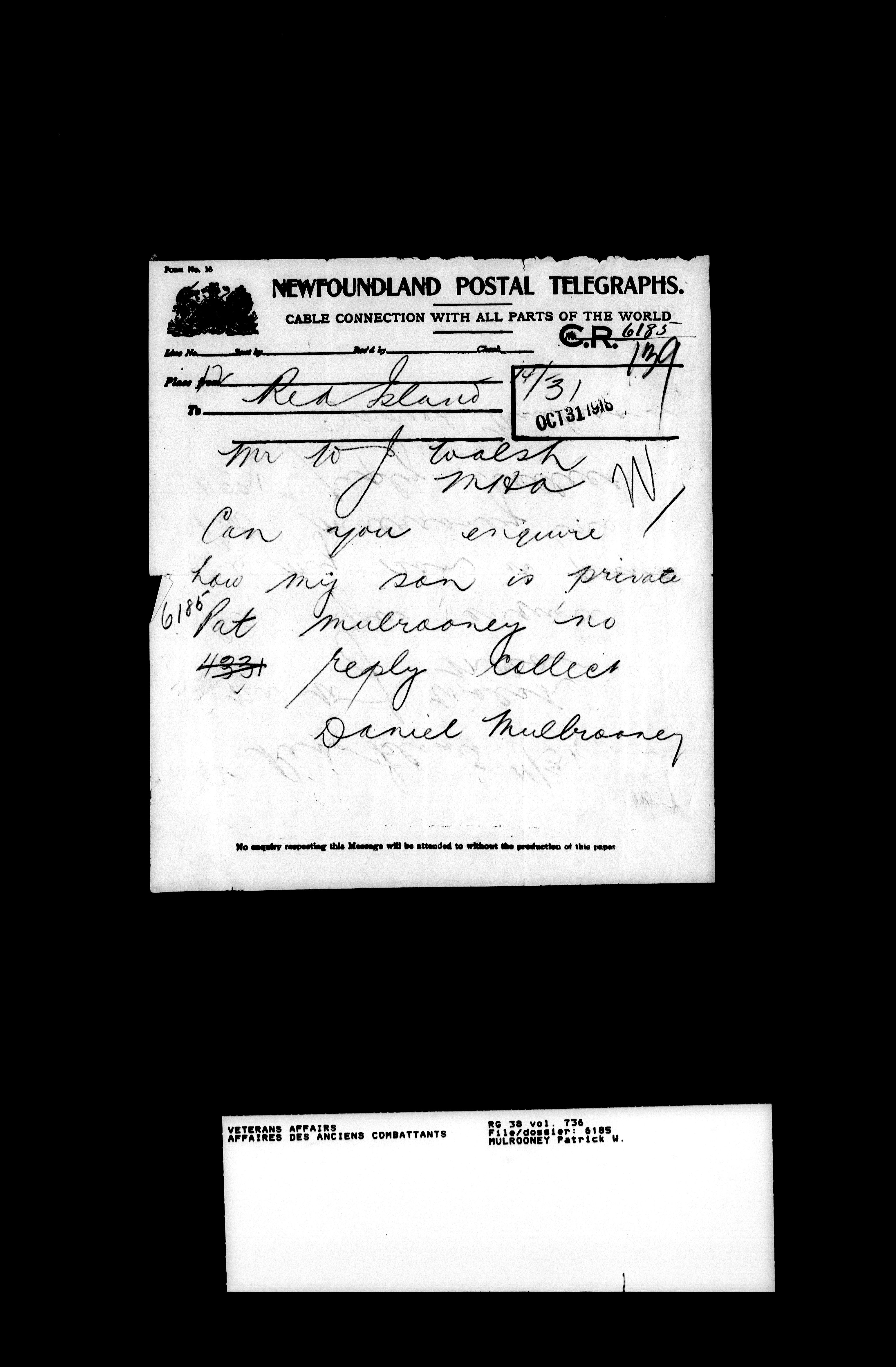 Royal Newfoundland Regiment service files : T-18560