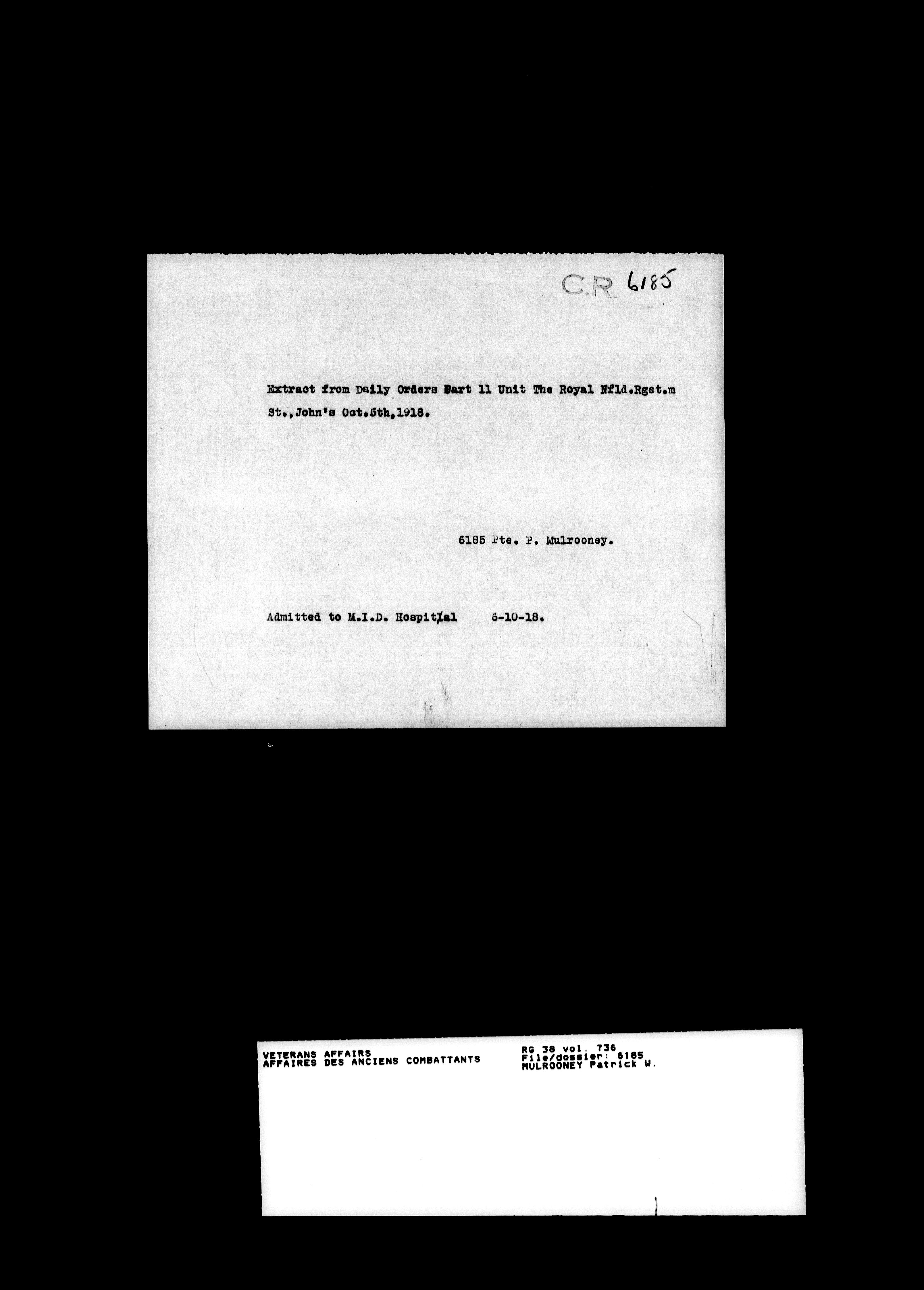 Military service files for members of the Royal Newfoundland Regiment and bandsmen and the Newfoundland Forestry Corps (1914-1919) - 18560