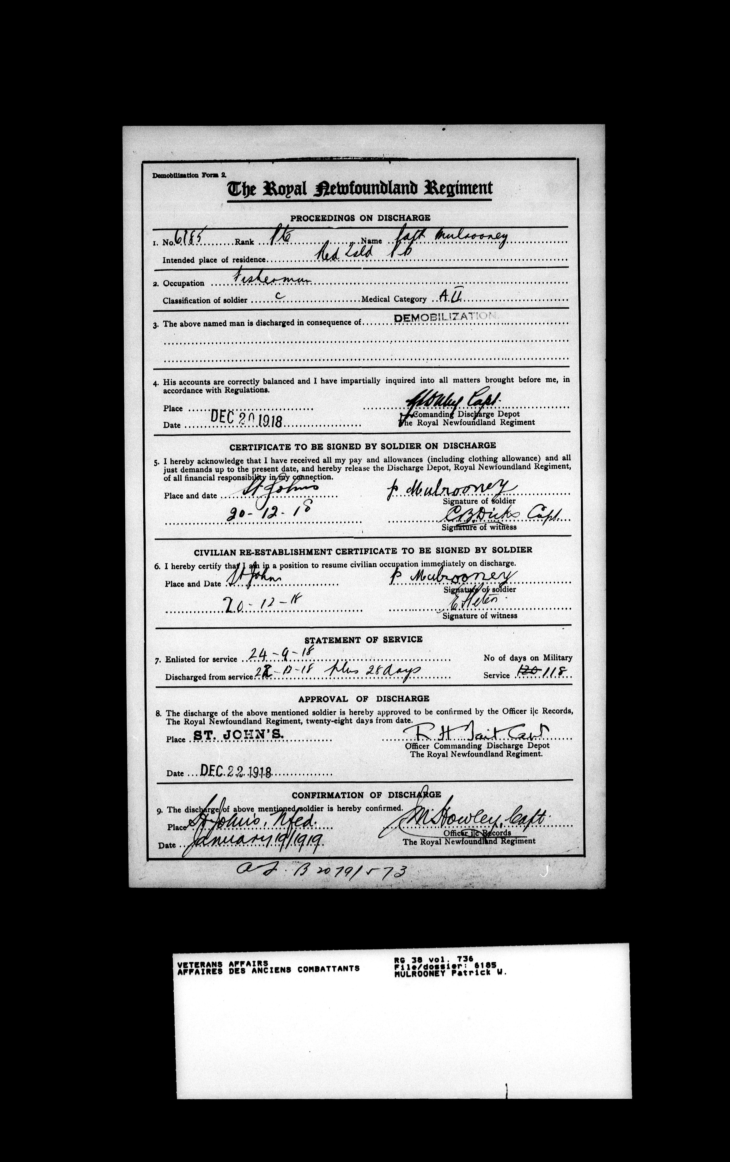 Military service files for members of the Royal Newfoundland Regiment and bandsmen and the Newfoundland Forestry Corps (1914-1919) - 18560