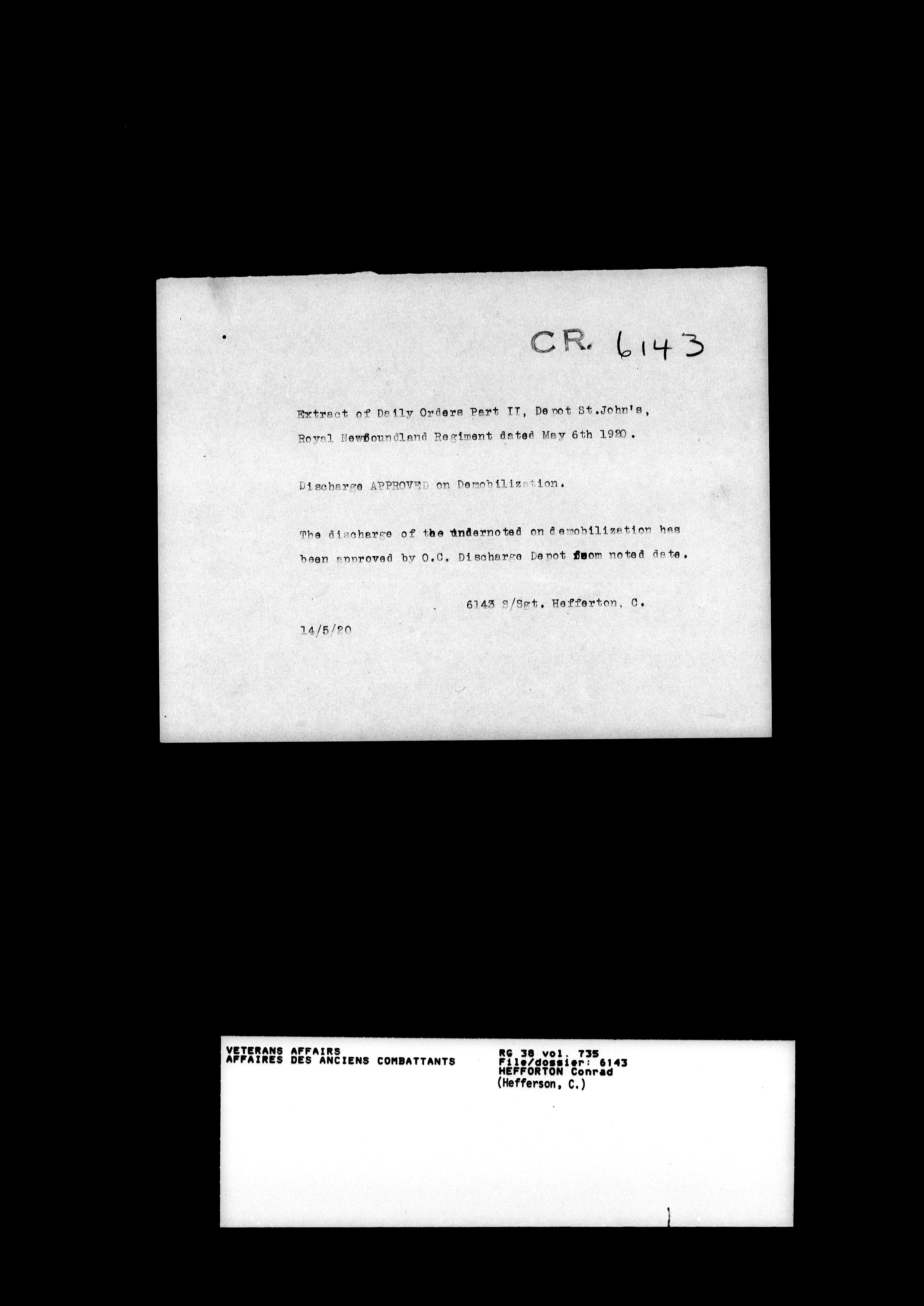 Royal Newfoundland Regiment service files : T-18560