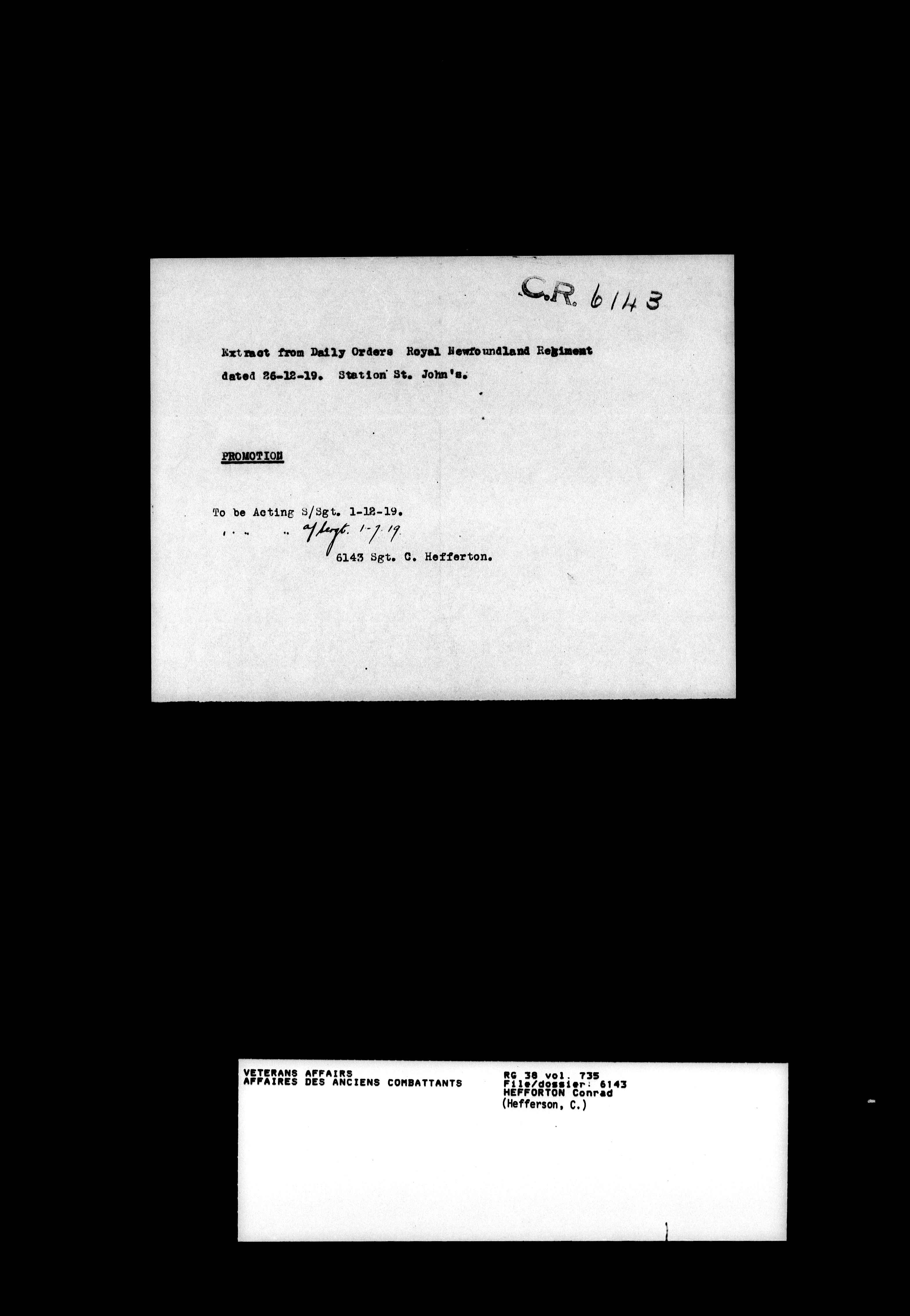 Military service files for members of the Royal Newfoundland Regiment and bandsmen and the Newfoundland Forestry Corps (1914-1919) - 18560