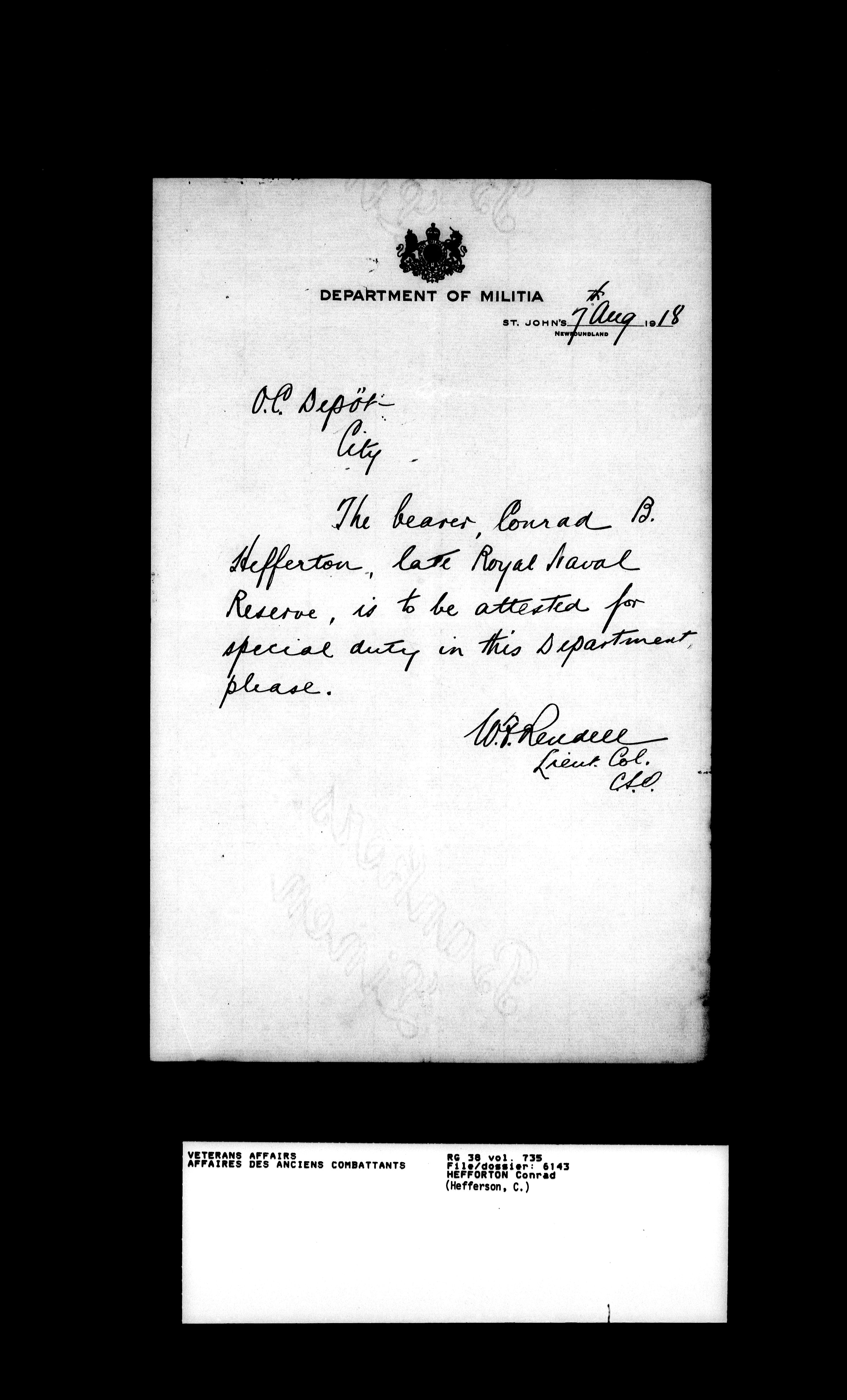 Military service files for members of the Royal Newfoundland Regiment and bandsmen and the Newfoundland Forestry Corps (1914-1919) - 18560