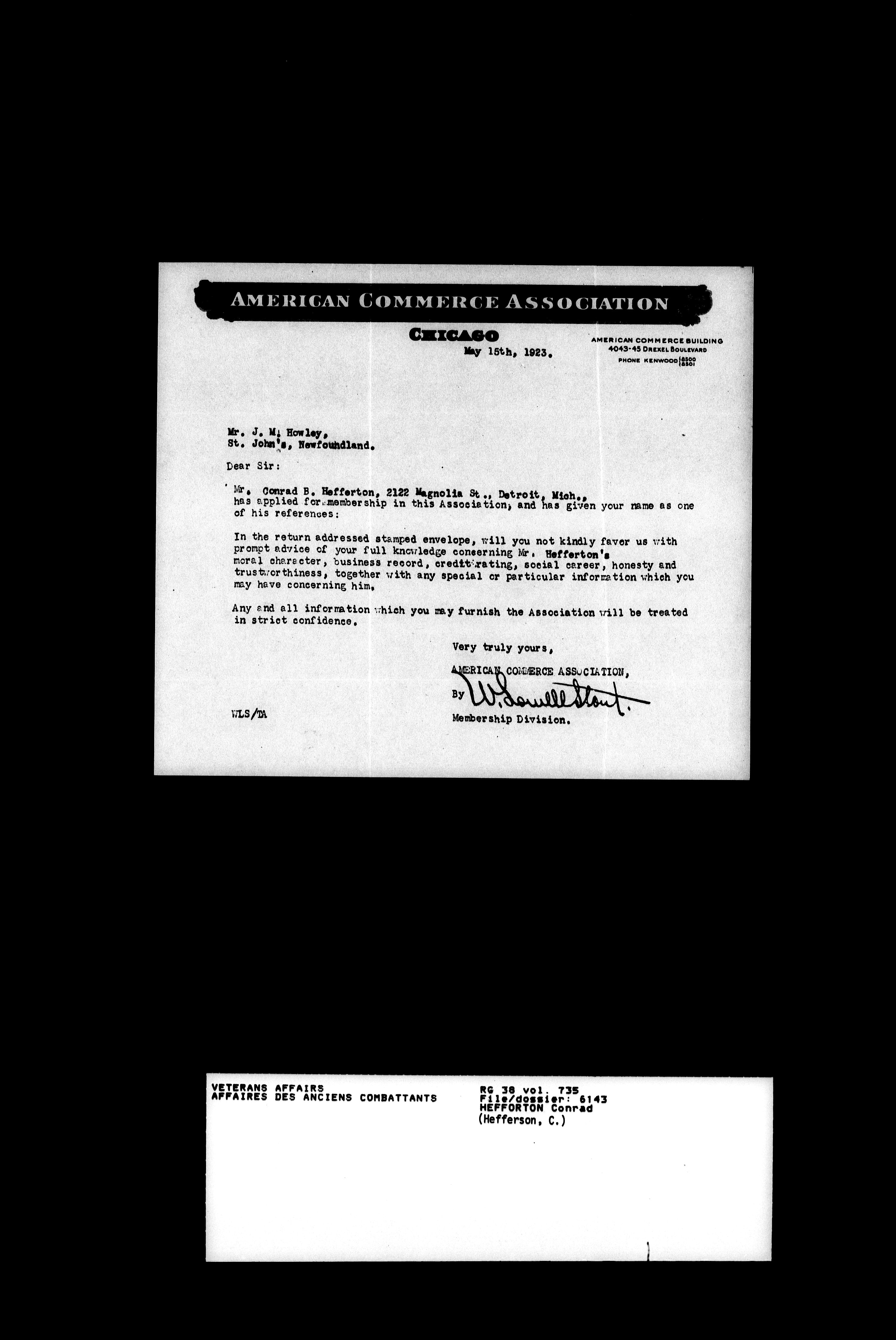 Royal Newfoundland Regiment service files : T-18560