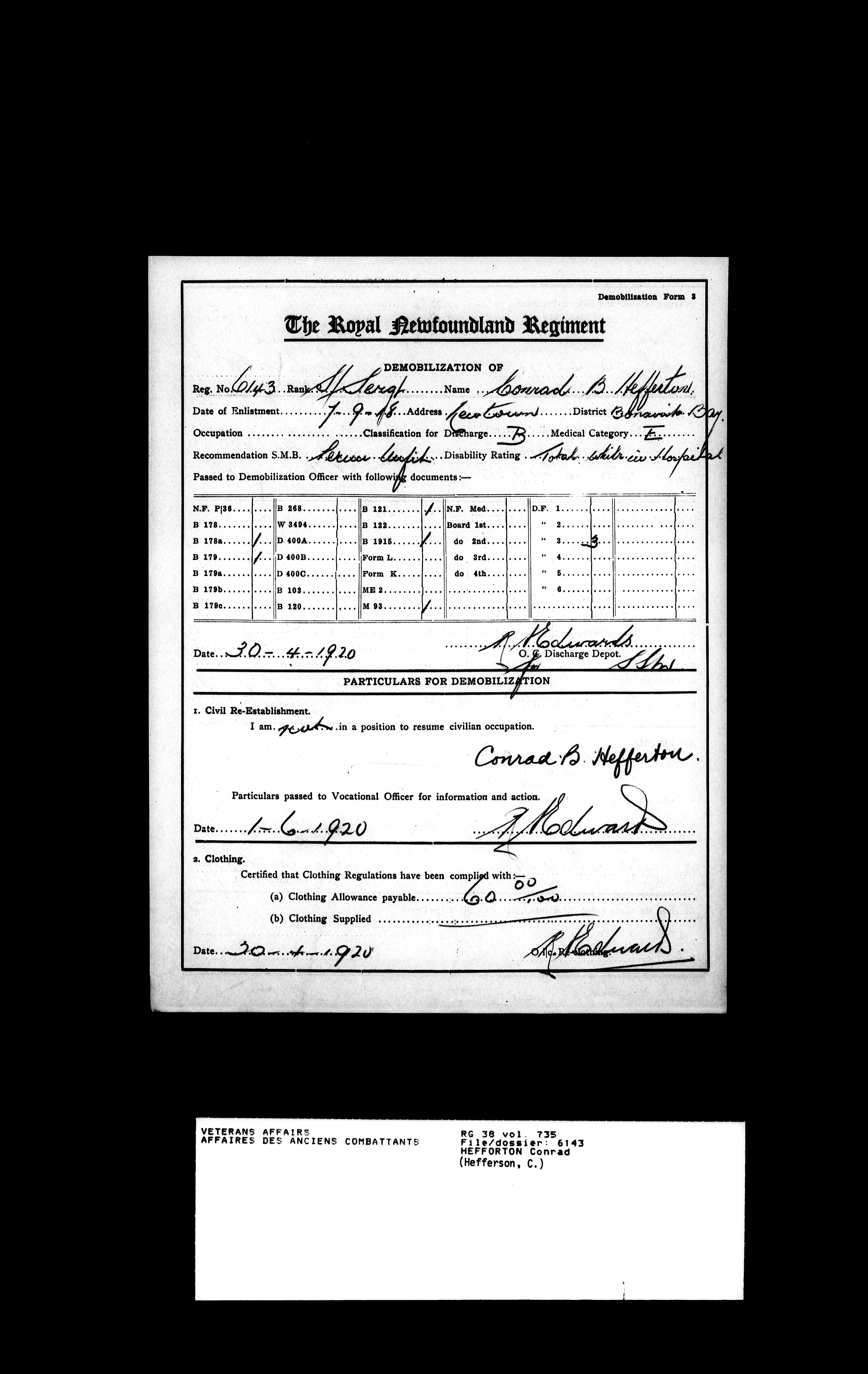 Military service files for members of the Royal Newfoundland Regiment and bandsmen and the Newfoundland Forestry Corps (1914-1919) - 18560